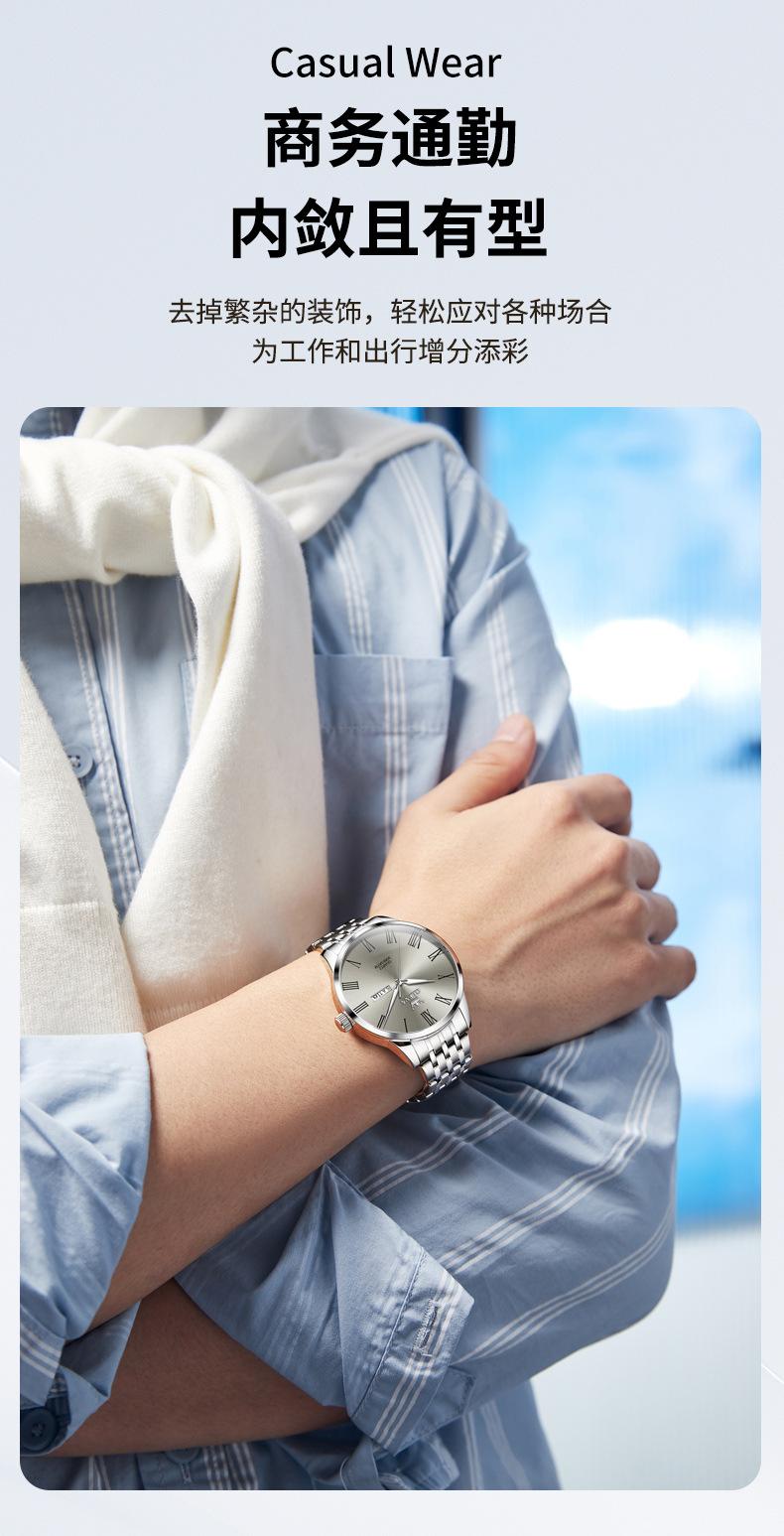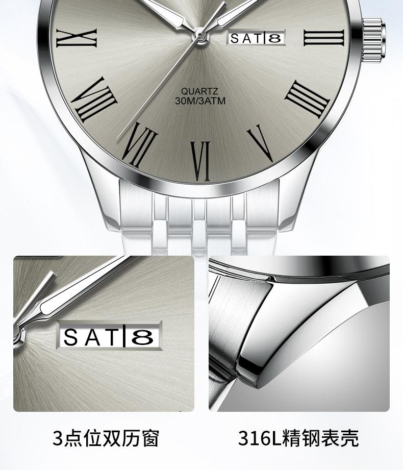El reloj está exquisitamente elaborado, incomparable con productos de 10 o 20 yuanes. Prestamos atención a la calidad de los detalles, utilizamos exclusivamente movimientos de alta calidad y empleamos artesanía de alta calidad para el pulido y la galvanoplastia de la caja. Nuestra reputación en ventas internacionales y nacionales es muy buena. ¡La calidad no teme a las comparaciones! Nuestra filosofía es que, en lugar de fabricar productos de baja calidad para ahorrar unos pocos yuanes y causar muchos problemas de posventa, es mejor invertir en calidad y ahorrarse el trabajo de posventa. En comparación, esto permitirá a los distribuidores obtener mayores márgenes de beneficio y a los consumidores obtener mejores productos.