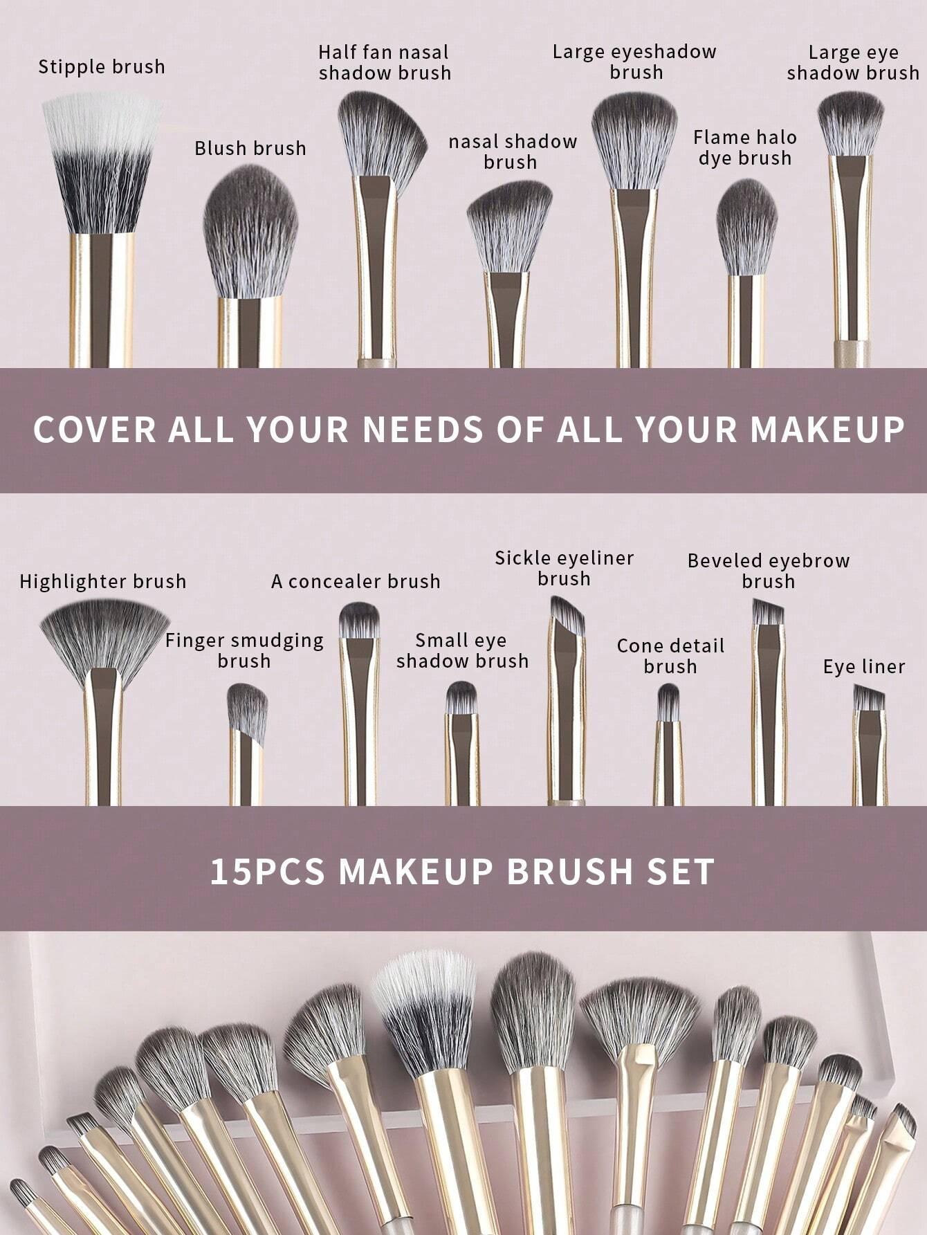 | Juego de 15 brochas de maquillaje marrones brochas de maquillaje profesionales 10 brochas para ojos 8 brochas para ojos brocha para rubor brocha para sombra de ojos pincel punteador brocha abanico brocha para cejas pincel delineador fábrica | 15 piezas-ojos marrones | FF24091001 | alto | OPP | Mango de goma/Tubo de aluminio/Lana de nailon | 18*10*1.5 | 64 |