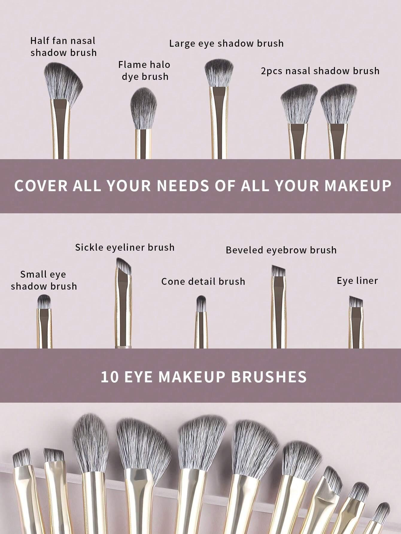 | Juego de 15 brochas de maquillaje marrones brochas de maquillaje profesionales 10 brochas para ojos 8 brochas para ojos brocha para rubor brocha para sombra de ojos pincel punteador brocha abanico brocha para cejas pincel delineador fábrica | 10 piezas-ojos marrones | FF24091003 | alto | OPP | Mango de goma/Tubo de aluminio/Lana de nailon | 17.5*7*0.8 | 39 |