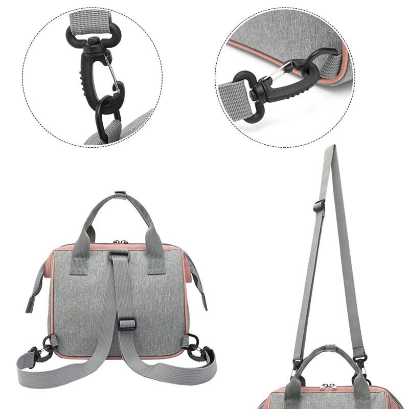 Espaço amplo, pode guardar fraldas, trocadores, mamadeiras, roupas de bebê, etc.