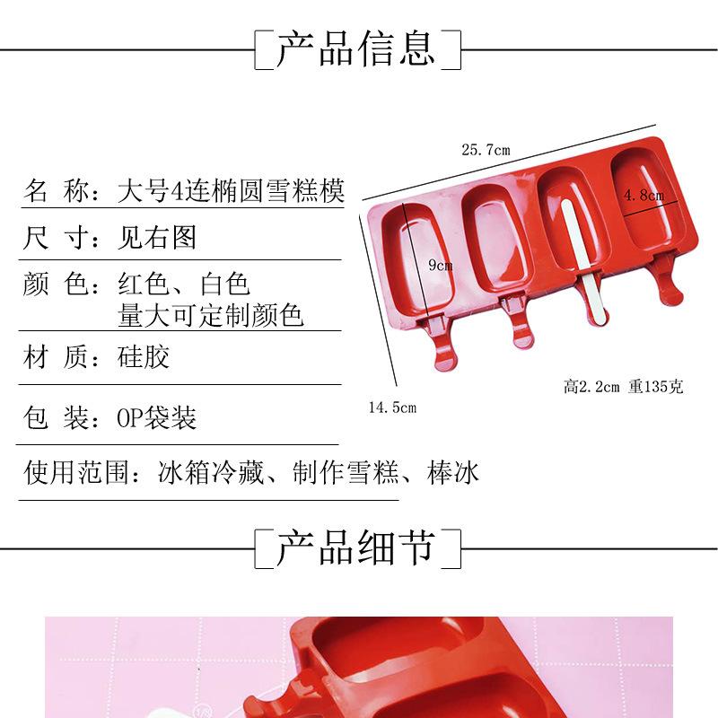 Ponto transfronteiriço grande 4 Oval silicone Picolé molde de gelo DIY picolé silicone mousse molde pudim molde de sorvete