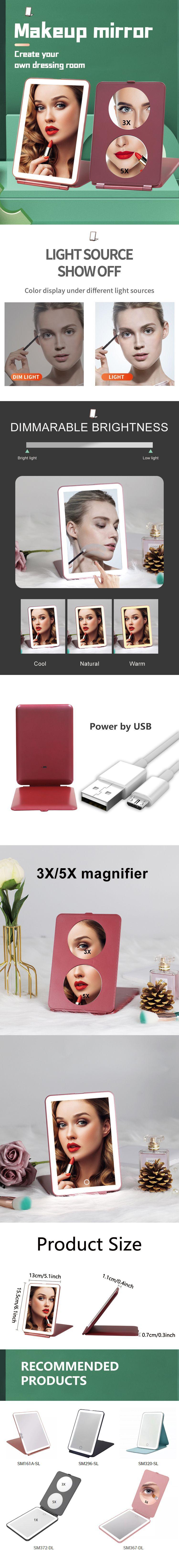 Espelho de maquiagem LED novo espelho de aumento de dupla face 5X espelho de beleza portátil para viagem Amazon espelho de maquiagem mais vendido