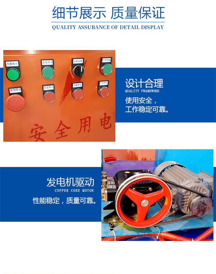4. Com potência independente e bomba de água de alta pressão, a máquina de limpeza funciona de forma estável e limpa com fluxo de água de alta pressão, economizando energia.