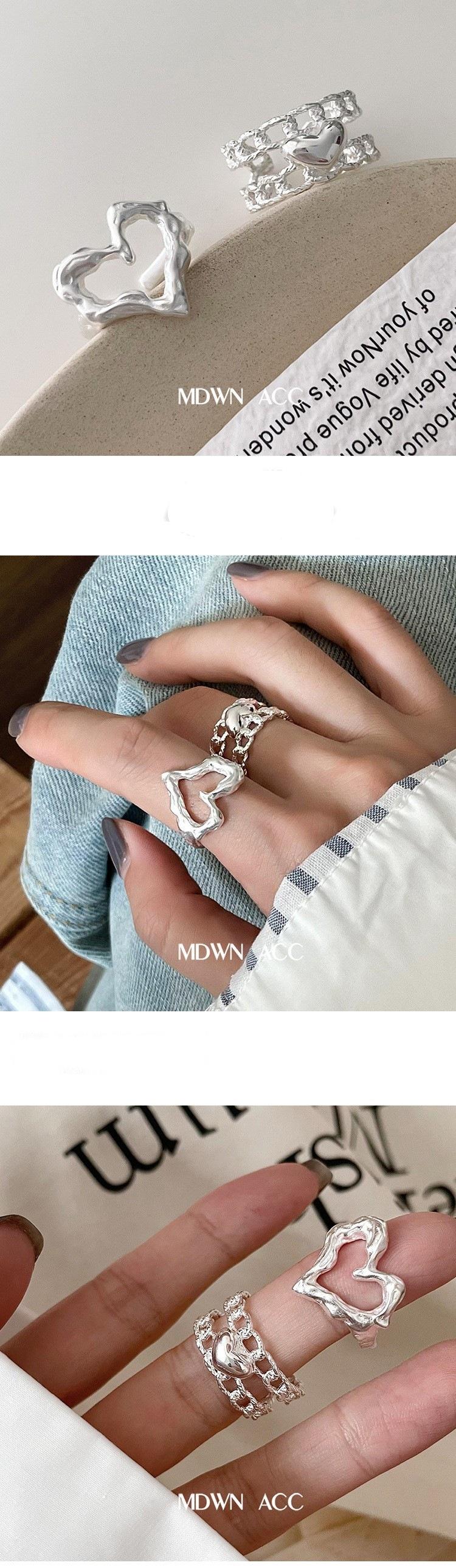 Anillo de Amor Irregular para Mujer Exquisito Estilo Frío Combinación Versátil Moda Plata S925 Chapado Anillo Abierto Anillo de Dedo Personalizado
