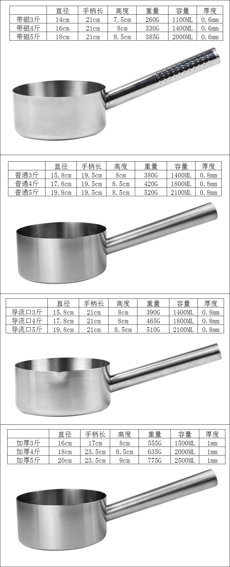 Nota: O cabo do modelo 304 é feito de 201. O corpo da colher é feito de 304.