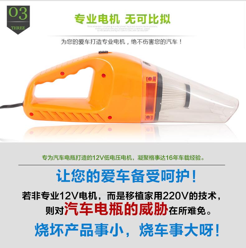 O clima é seco no inverno e na primavera, e há muita poeira. Se você deixá-los ficar no carro, é fácil produzir bactérias e prejudicar a saúde humana! Para evitar poeira e qualidade da água, é uma boa escolha usar isso. Este modelo é poderoso e muito poderoso. Ele é equipado com um tubo bico de pato, que pode sugar para qualquer canto! Ele também pode sugar muita água, então não se preocupe se houver bebidas ou outros líquidos derramados no carro! Este modelo tem ruído muito baixo e potência forte. Ele pode ser usado conectando-se à fonte de alimentação do acendedor de cigarros de 12 V. O cabo de alimentação tem cerca de 4,5 metros de comprimento, o que é conveniente para você limpar todos os cantos do seu carro. Este aspirador de pó pode absorver água, e água ou bebidas derramadas no carro podem ser facilmente removidas. Insira o plugue de alimentação DC 12 V no acendedor de cigarros do carro. Ele não só pode absorver poeira, mas também absorver líquidos vazados. Pode ser usado úmido ou seco. A tampa frontal é transparente e destacável, equipada com um filtro especial para limpeza regular conveniente. É equipado com um tanque de armazenamento de água transparente para armazenar a água adsorvida. É equipado com uma cabeça plana de adsorção de canto especial, que pode absorver poeira de canto e tem sucção forte.