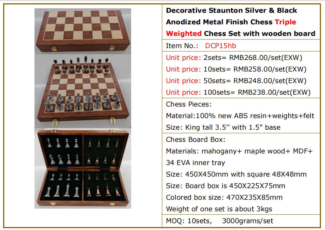 “"Tangdun Plastic Industry" é uma fábrica que produz e vende produtos de xadrez. Nossos produtos de xadrez incluem peças de xadrez de diferentes tamanhos, tabuleiros de xadrez, relógios de xadrez, livros de registro de xadrez, bolsas de xadrez, xadrez de demonstração de ensino de xadrez, xadrez gigante ao ar livre, medalhas de xadrez, xadrez de 3 pessoas, xadrez de 4 pessoas, xadrez magnético, etc. Incluindo diferentes designs, diferentes tamanhos, diferentes pesos e diferentes materiais. Bem-vindos todos os amigos do xadrez e instituições de treinamento de xadrez para escolher nossos produtos de xadrez.