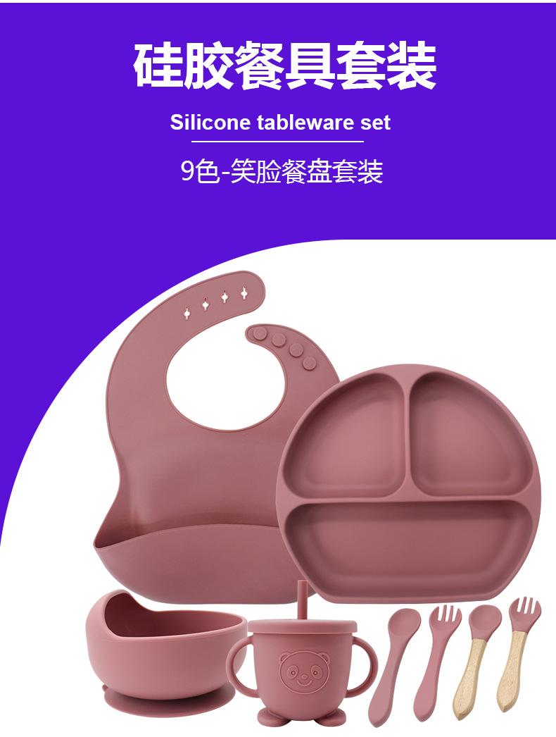 [Nome do produto]: Conjunto de pratos de jantar de silicone com rosto sorridente