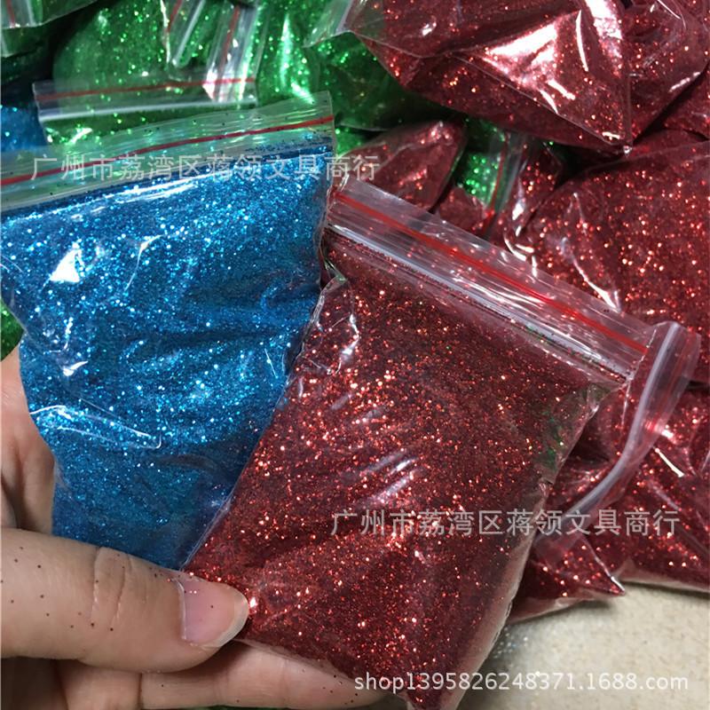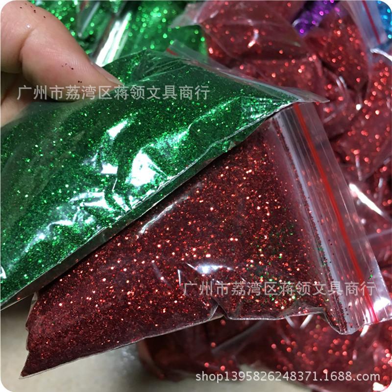 Como material de tratamento de superfície com altos efeitos, o pó de glitter é amplamente utilizado em montagem de ponto cruz, artesanato de Natal, ornamentos de Natal, impressão e tingimento de têxteis, flores de cola artificial, flores de seda, frutas, presentes artesanais, presentes de Natal, cola com glitter, cartões de felicitações, artesanato em resina, artesanato em vidro, velas artesanais, artigos de papelaria, serigrafia, cosméticos, impressão em tecido, decoração de tintas, pintura spray em móveis e outros campos. Suas características são realçar o efeito visual do produto, tornar a parte decorativa côncava e convexa, e ter camadas, e mais tridimensional. Suas características de alto brilho também tornam as decorações brilhantes e deslumbrantes, adicionando brilho.