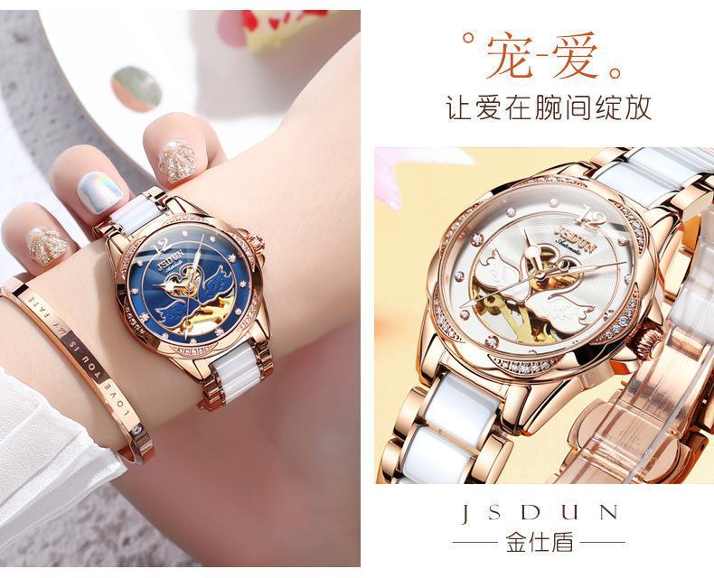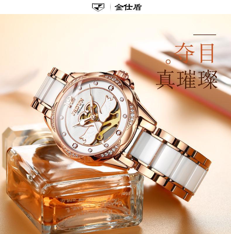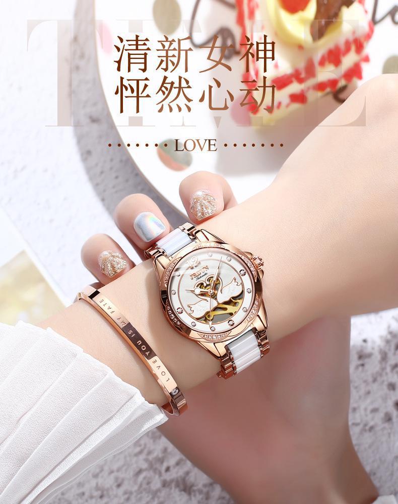 [Punto de venta]: Pulsera de acero inoxidable y cerámica de estilo cisne hueco, ¡a la moda! Cálida y cómoda para el uso diario, ¡estilo diosa moderno y hermoso!