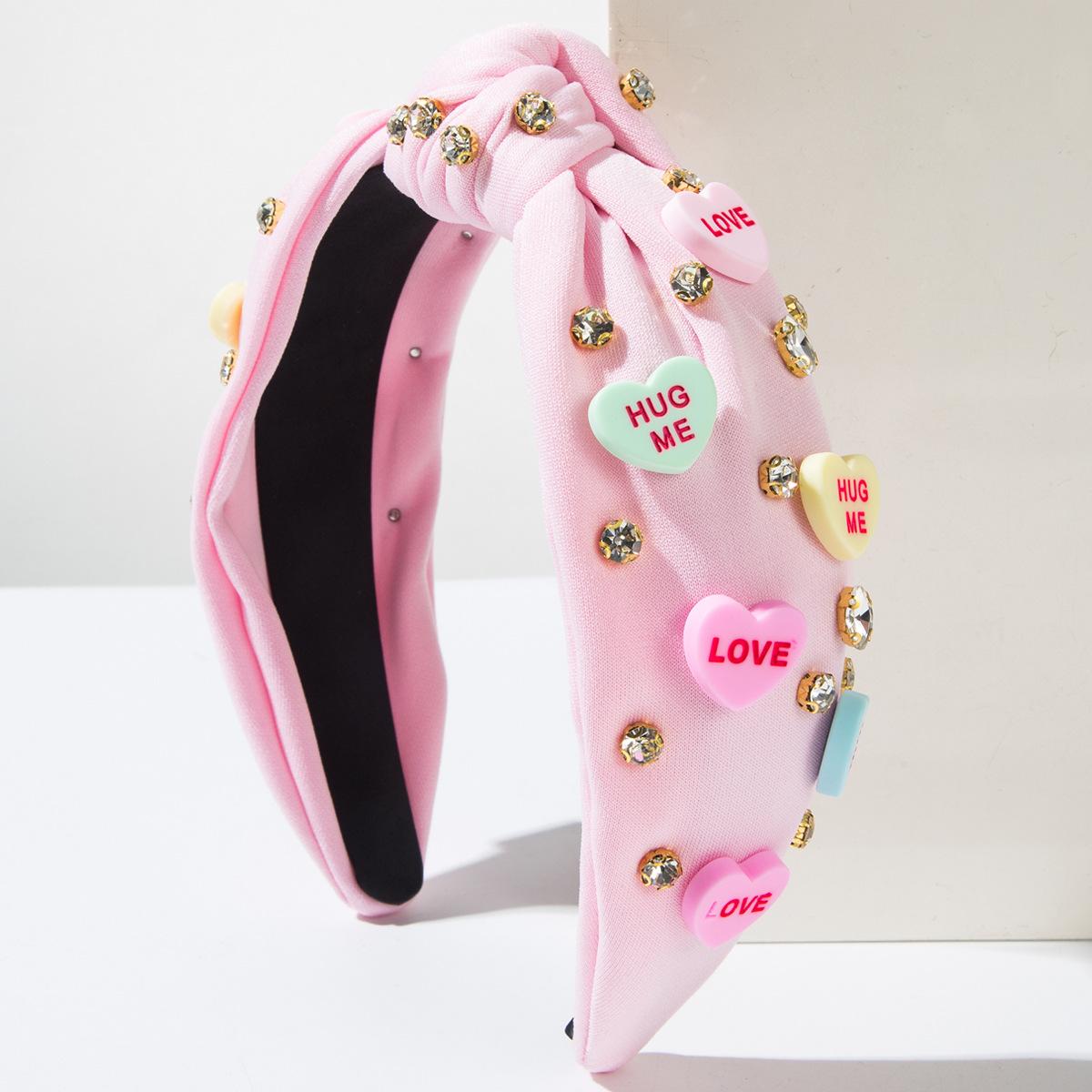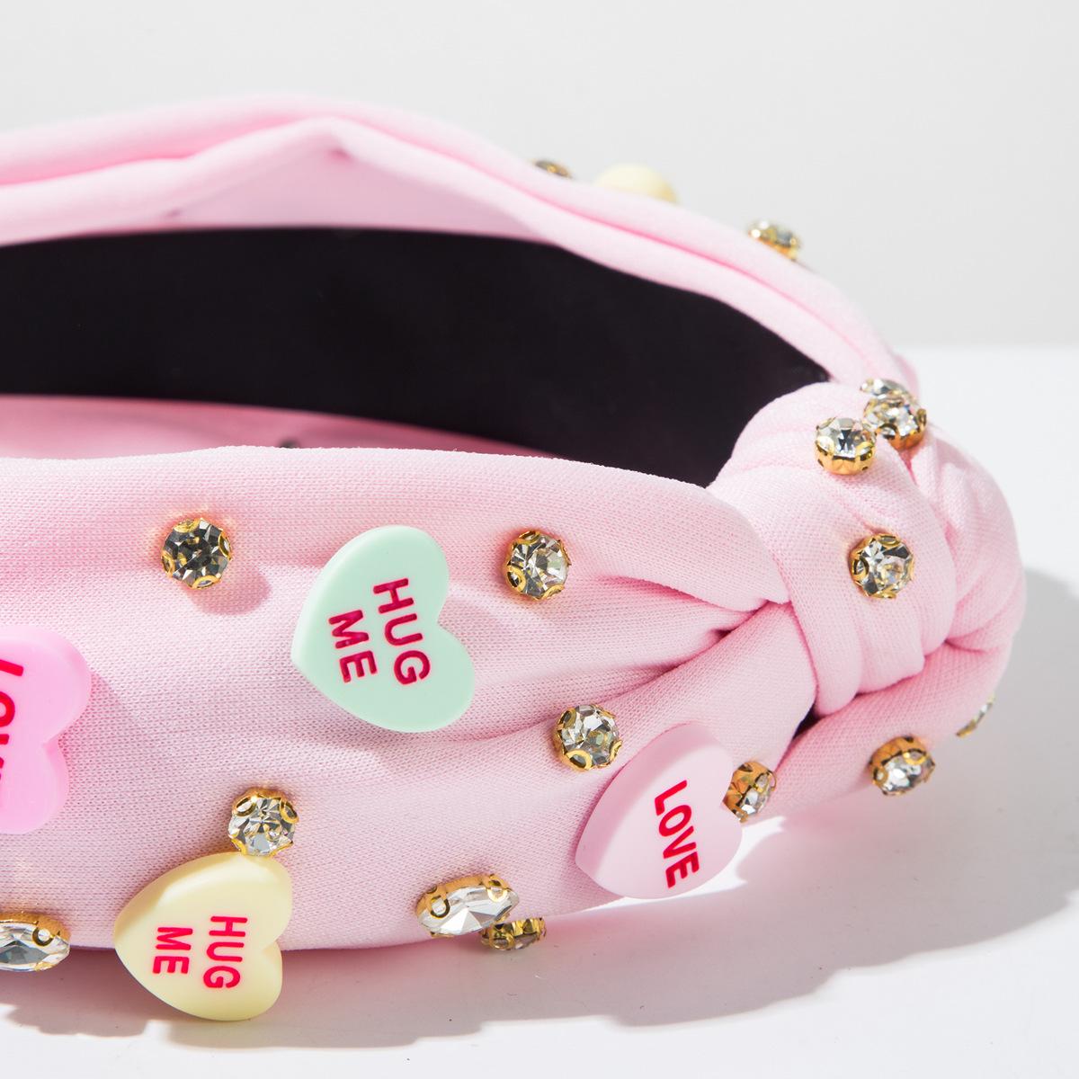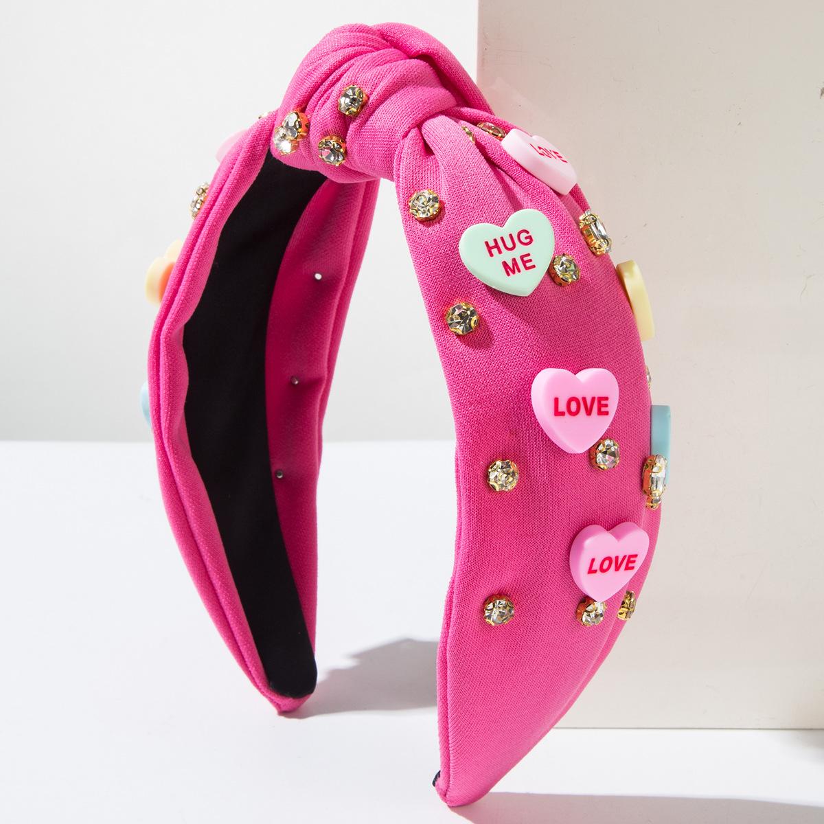 Diadema con letras en forma de corazón para el Día de San Valentín de Amazon, superventas transfronterizas de 2025, accesorios para el cabello con diamantes anudados a mano, horquilla ¥14.20 |