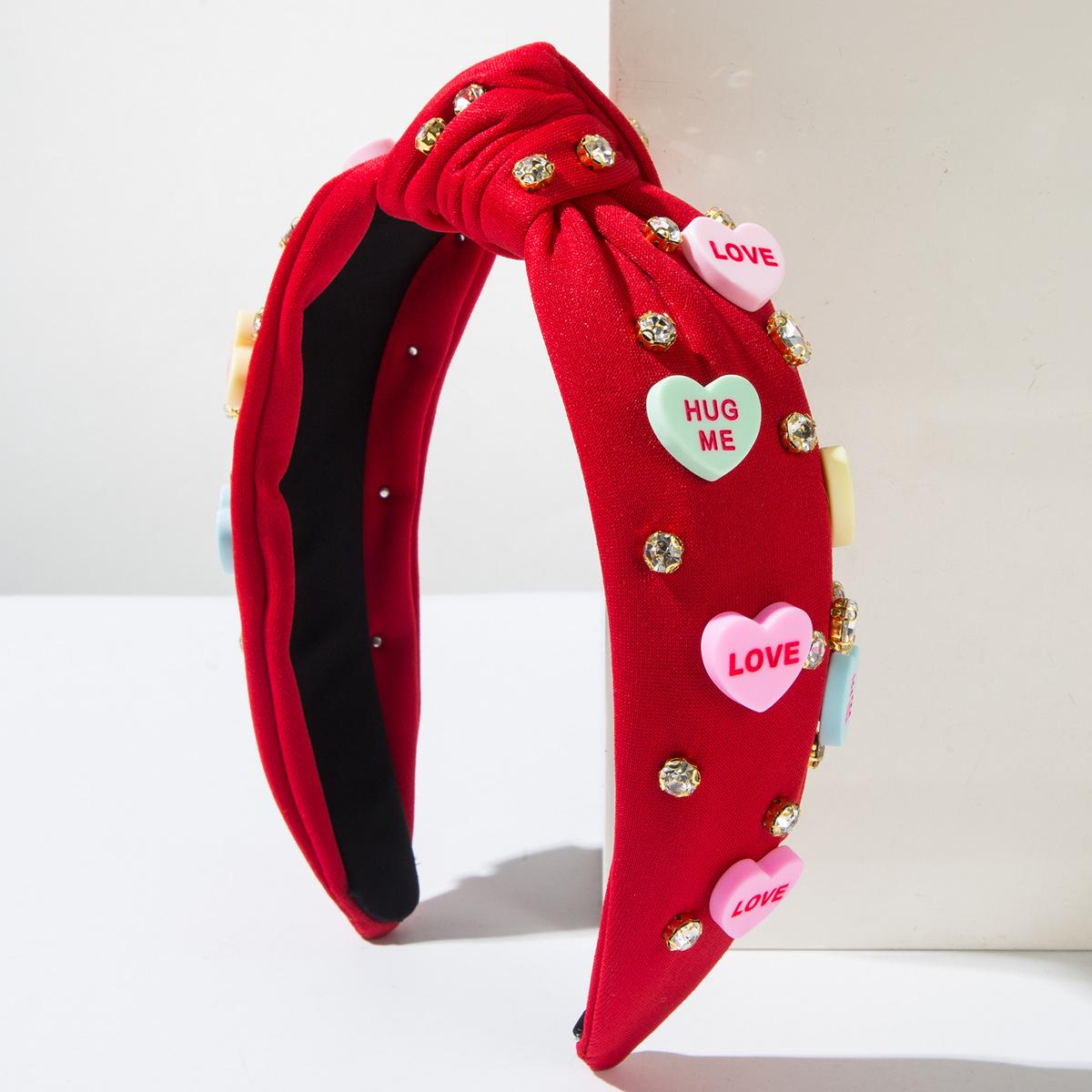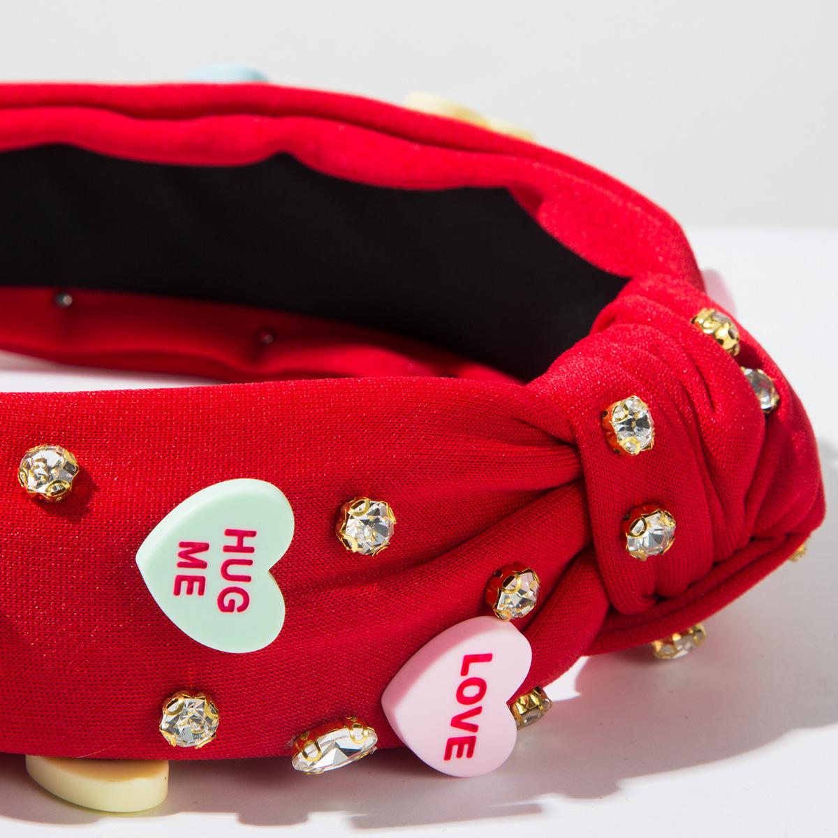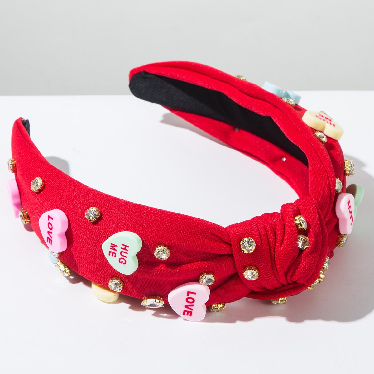 Venta caliente transfronteriza nueva diadema de San Valentín con accesorios de amor anudados, diadema de ala ancha con incrustaciones de diamantes, dulces accesorios para el cabello navideños para mujeres ¥13.00 |