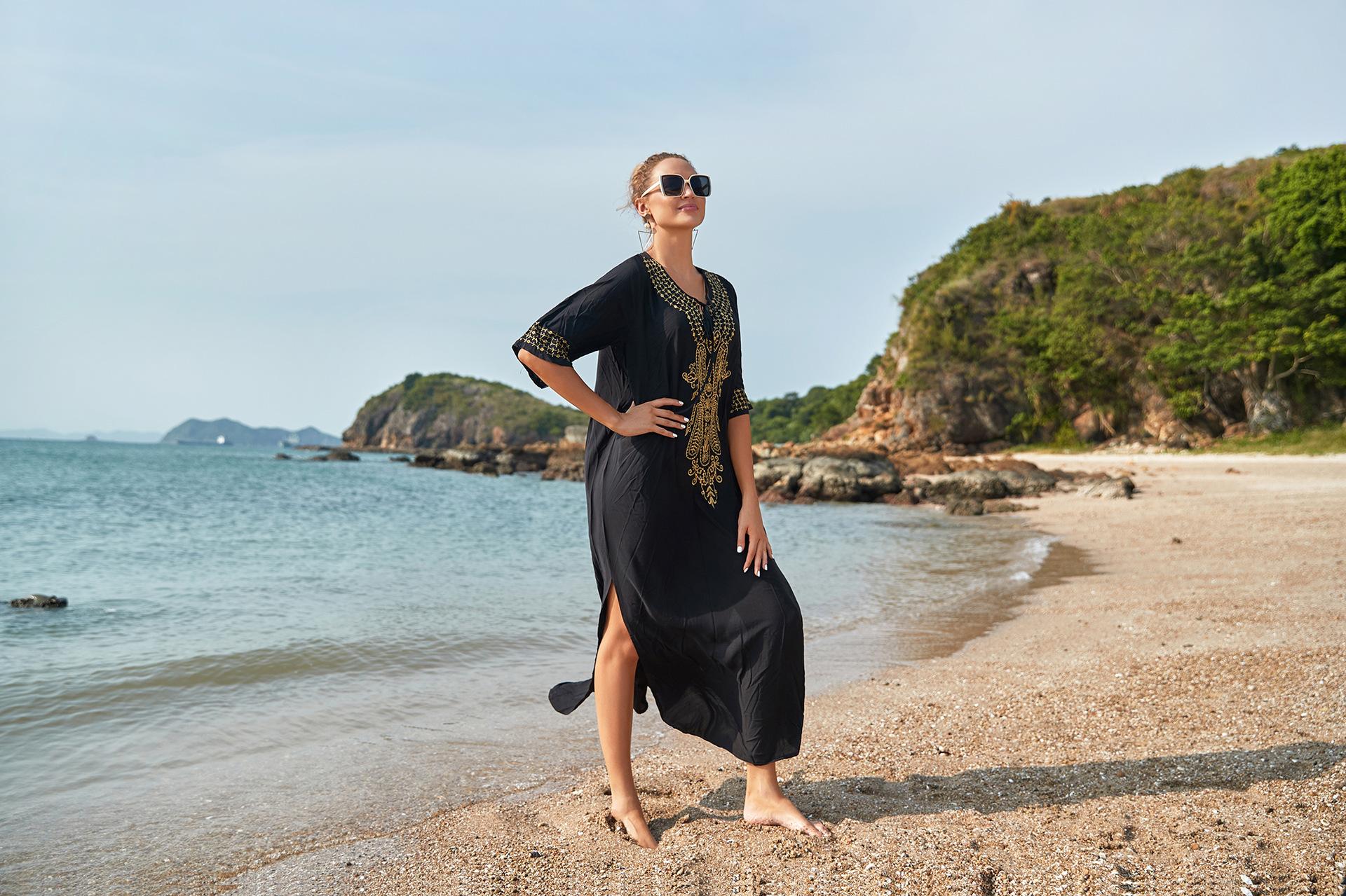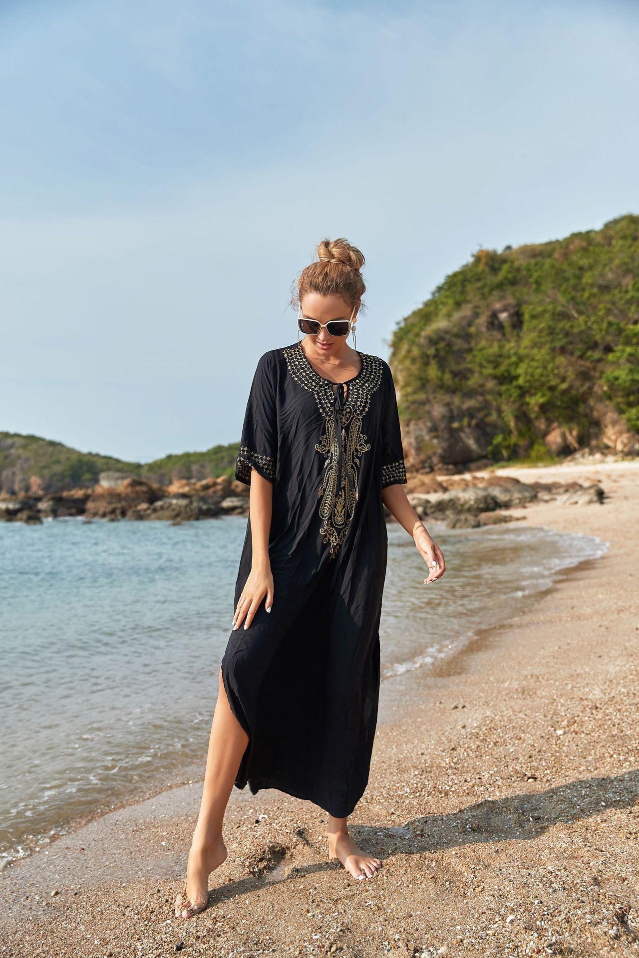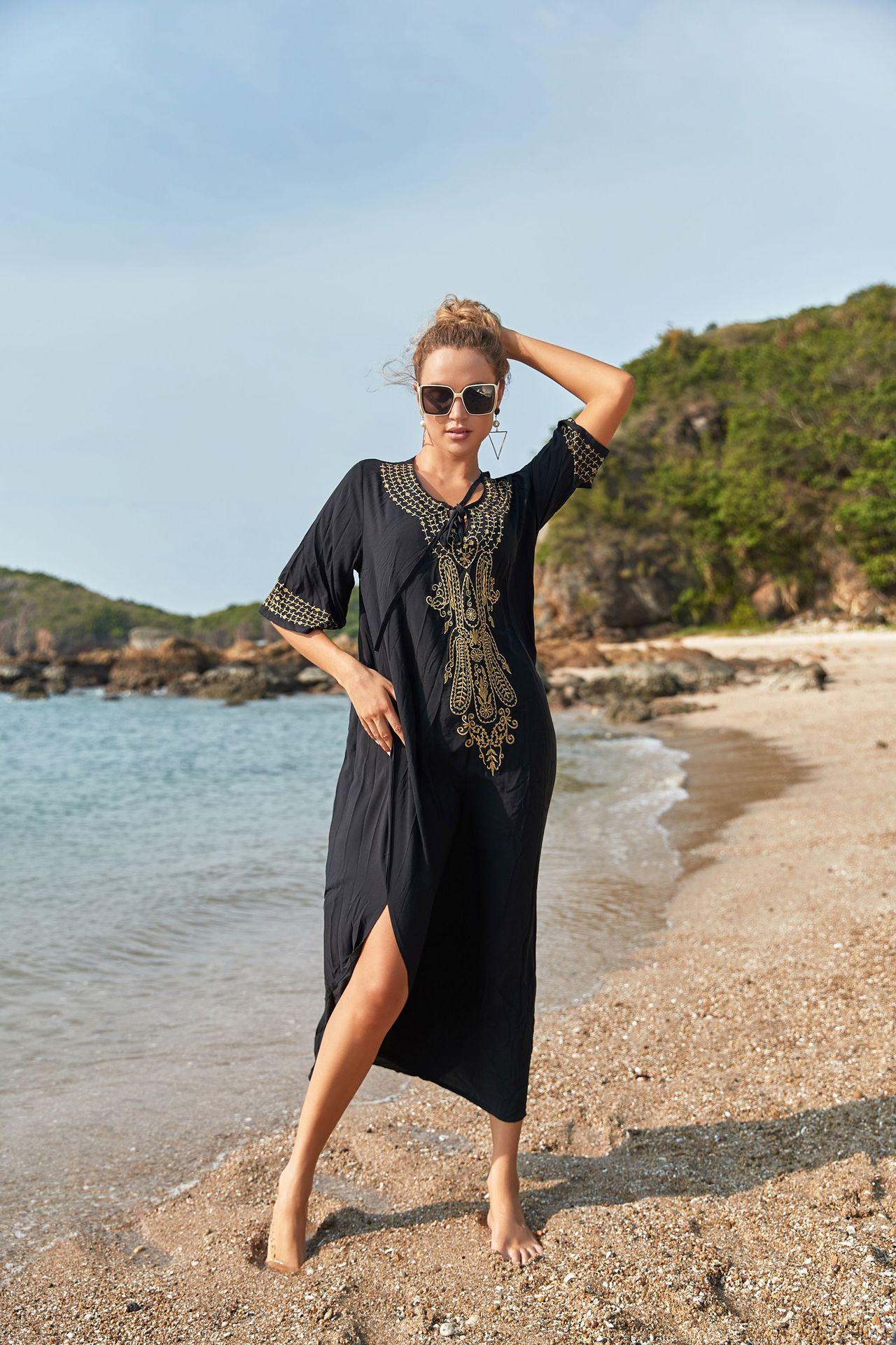 Saia de praia estampada de algodão europeia e americana, robe solto, biquíni de férias à beira-mar, maiô, capa, protetor solar, camisa feminina | |