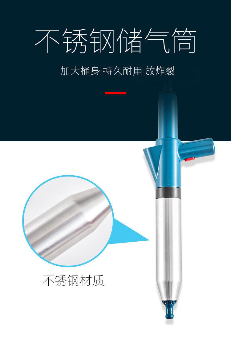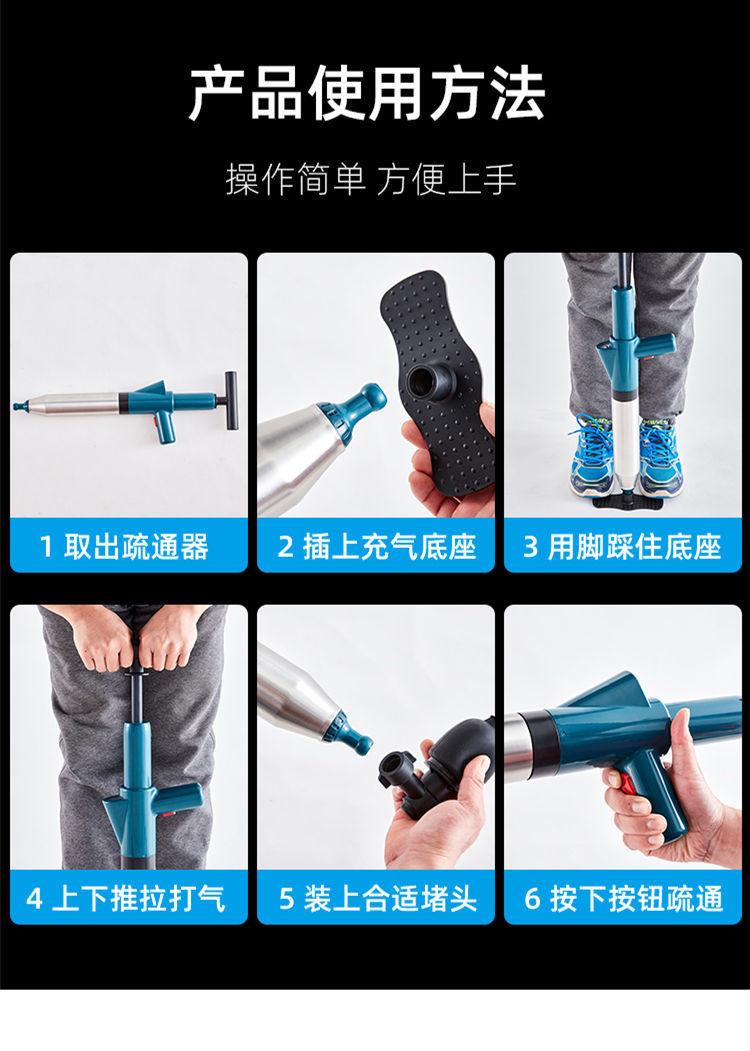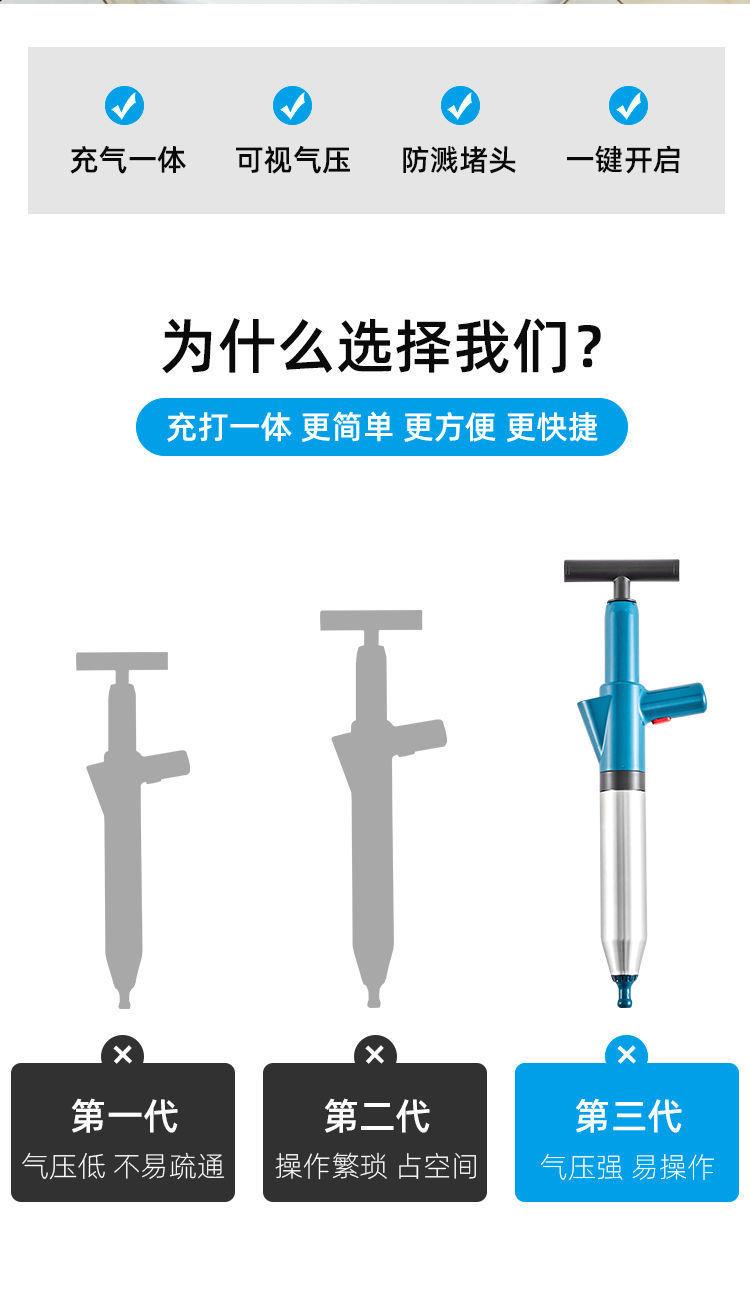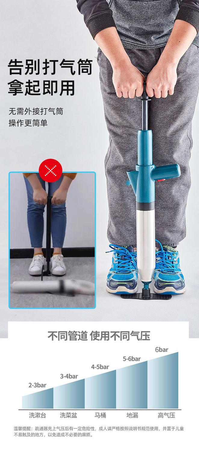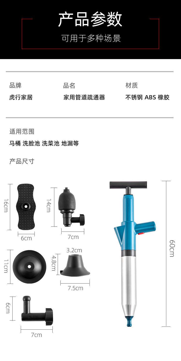Desatascador de Inodoro Tiger Walking de Paso Rápido por Presión de Aire Tipo de Presión de Aire Desatascador de Tuberías de Inodoro” Introducción Detallada I. Operación sencilla. II. Apariencia elegante, simple pero no sencilla. III. Fácil de usar, desatasco con una sola tecla, los ancianos y los niños pueden operar fácilmente. IV. Máquina multiusos, puede resolver varios atascos, como lavabos, fregaderos de cocina, bañeras, desagües de piso, atascos de inodoro, etc. V. La tecnología de sellado con bolsa de aire evita que salpique agua sucia. VI. Fuerte hermeticidad, logrando la separación de agua y electricidad.