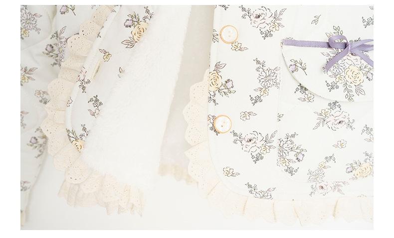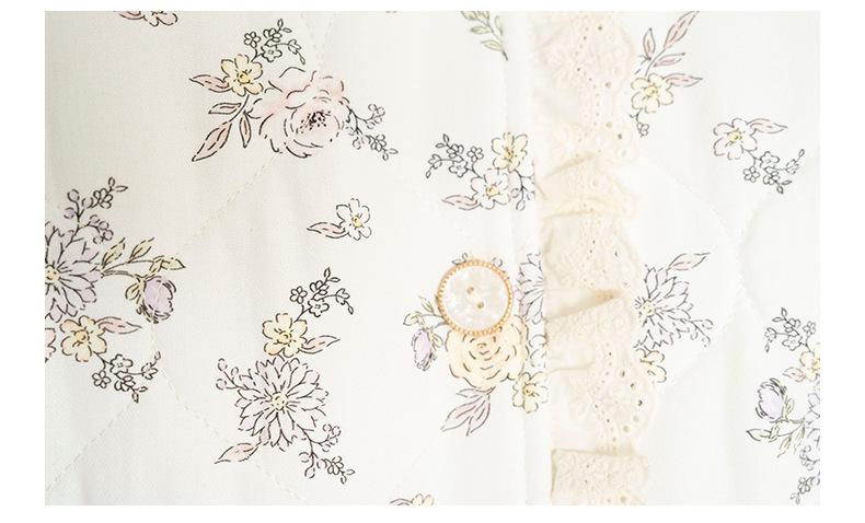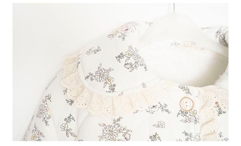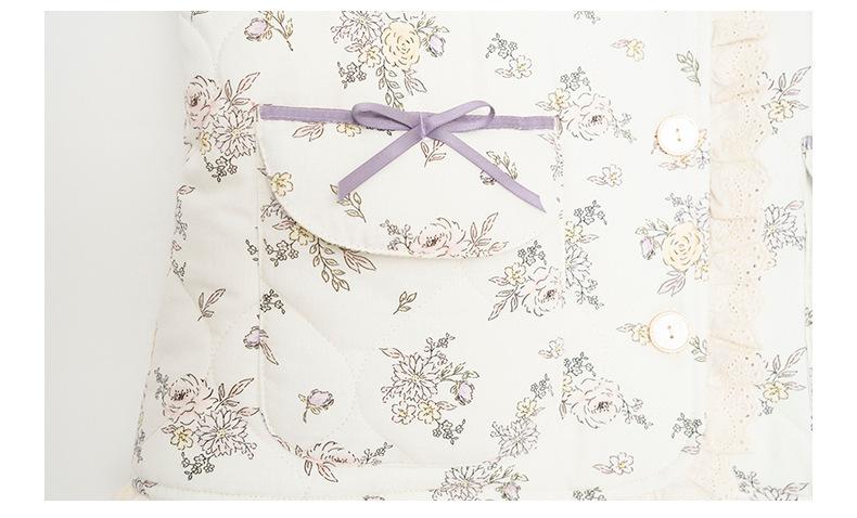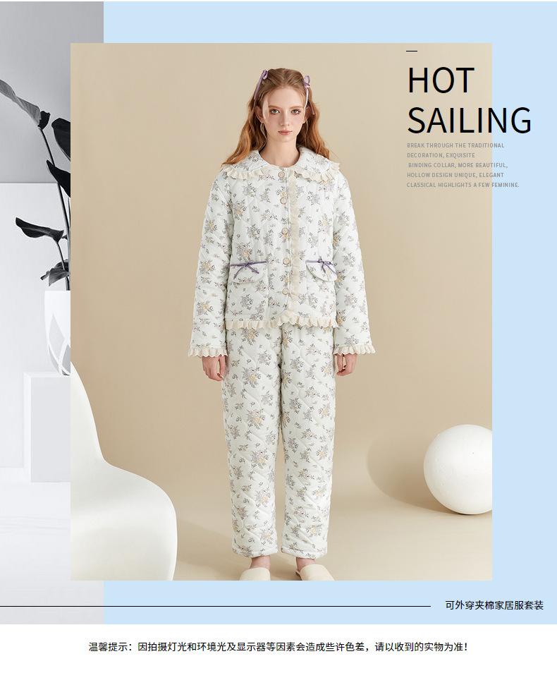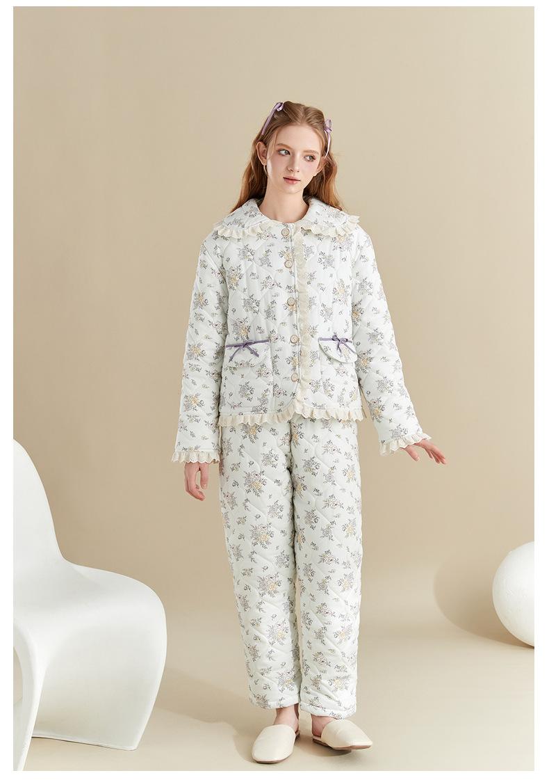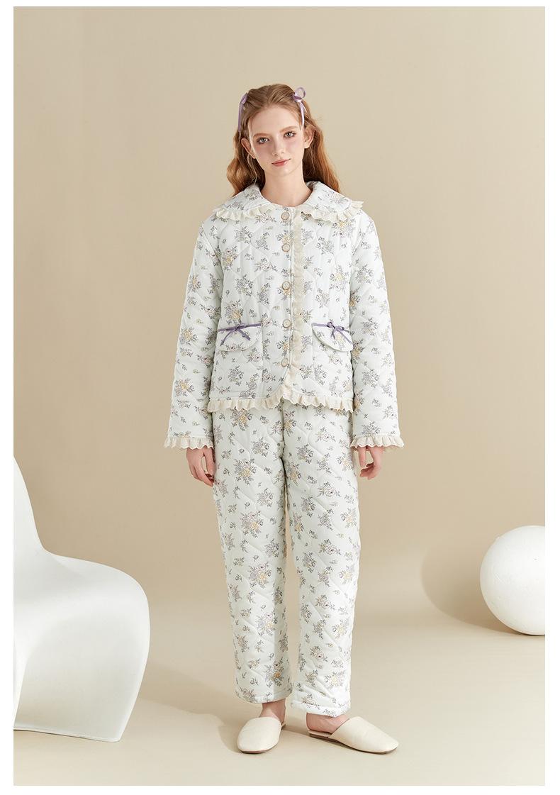 Pijama acolchoado de três camadas de inverno para mulheres com estampas florais, doce e elegante, roupas de casa grossas e quentes para meninas no inverno, ternos para economizar roupas