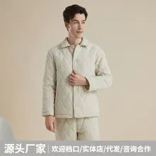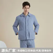 Pijama Masculina de Inverno Acolchoada de Algodão Espessa Forrada de Lã Quente Acolchoada de Algodão de Três Camadas Casual Algodão Puro Pode Ser Usada Fora Conjunto de Roupa de Casa
