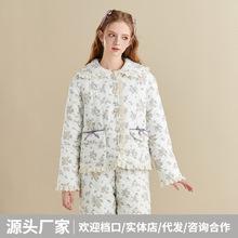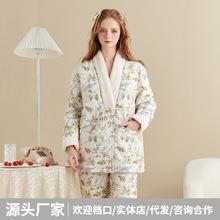 Pijama acolchoado de três camadas extra grosso de inverno original para mulheres, roupas de casa estilo nacional quentes e grossas, roupas para uso ao ar livre