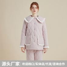 Terno acolchoado de três camadas, grosso, acolchoado, algodão, roupas para casa, abaixo de zero, pijamas para sair, outono e inverno, roupas quentes femininas, roupas de algodão, novos produtos