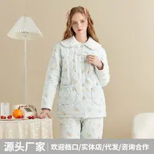 Pijama Acolchoada de Algodão Puro Espessura Tripla e Forrada com Flanela Feminina Inverno Quente Pode Ser Usada ao Ar Livre Estilo Outono e Inverno Conjunto de Roupa de Dormir Feminina