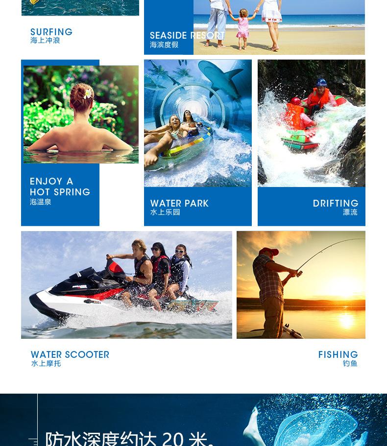 Fontes termais, natação, rafting, mergulho, bolsa à prova d'água para celular