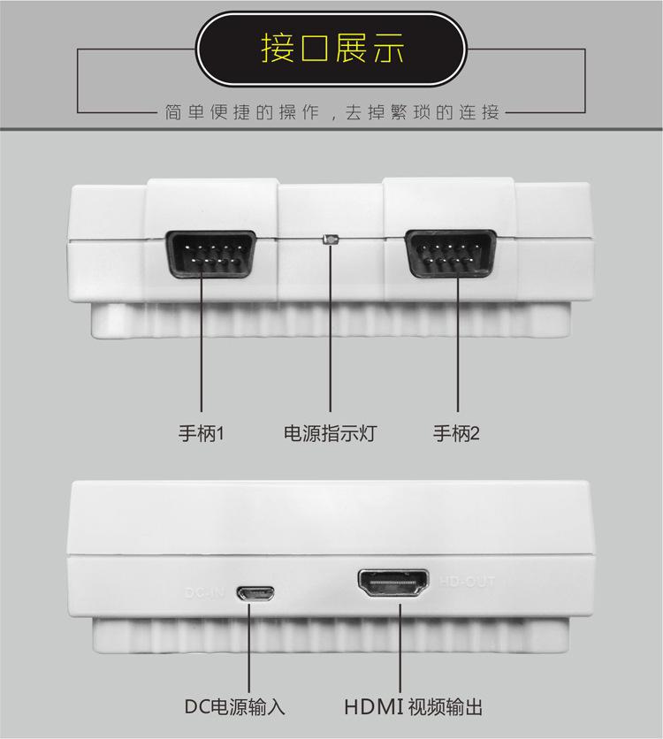 O produto usa saída de cabo HDMI de alta definição, a imagem é mais delicada e você não precisa mais se adaptar à qualidade de imagem confusa da saída de cabo AV tradicional.Nenhum jogo incluído