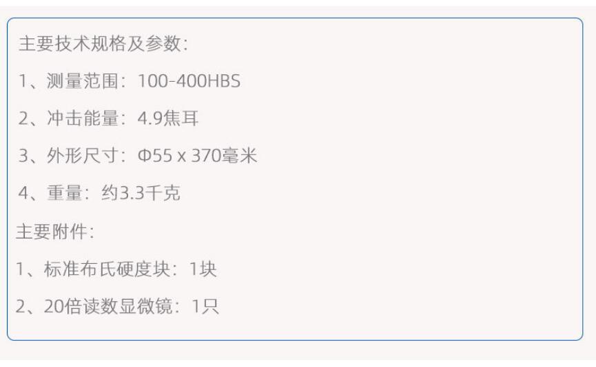 Probador de dureza Brinell portátil HBX-0.5Parámetros técnicos