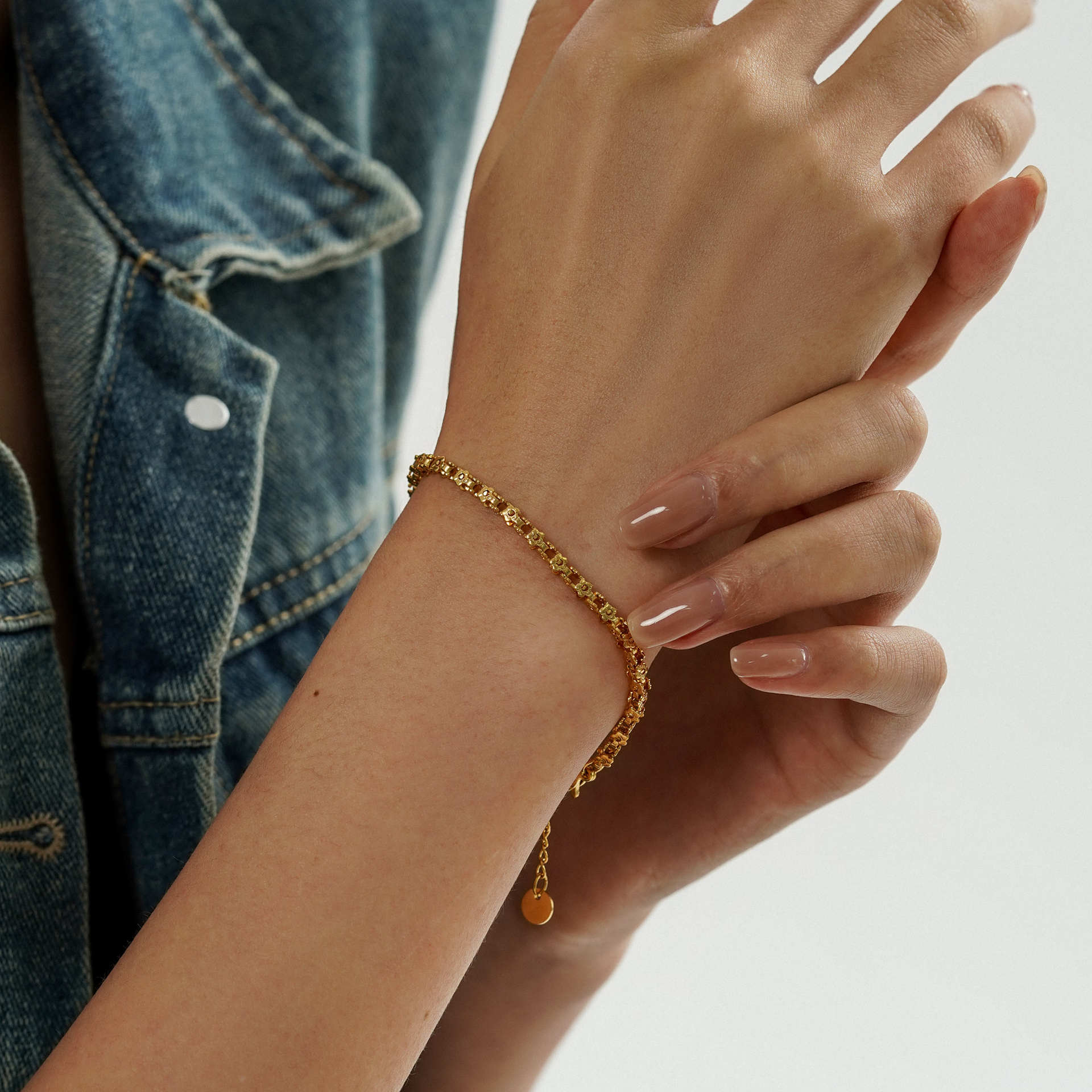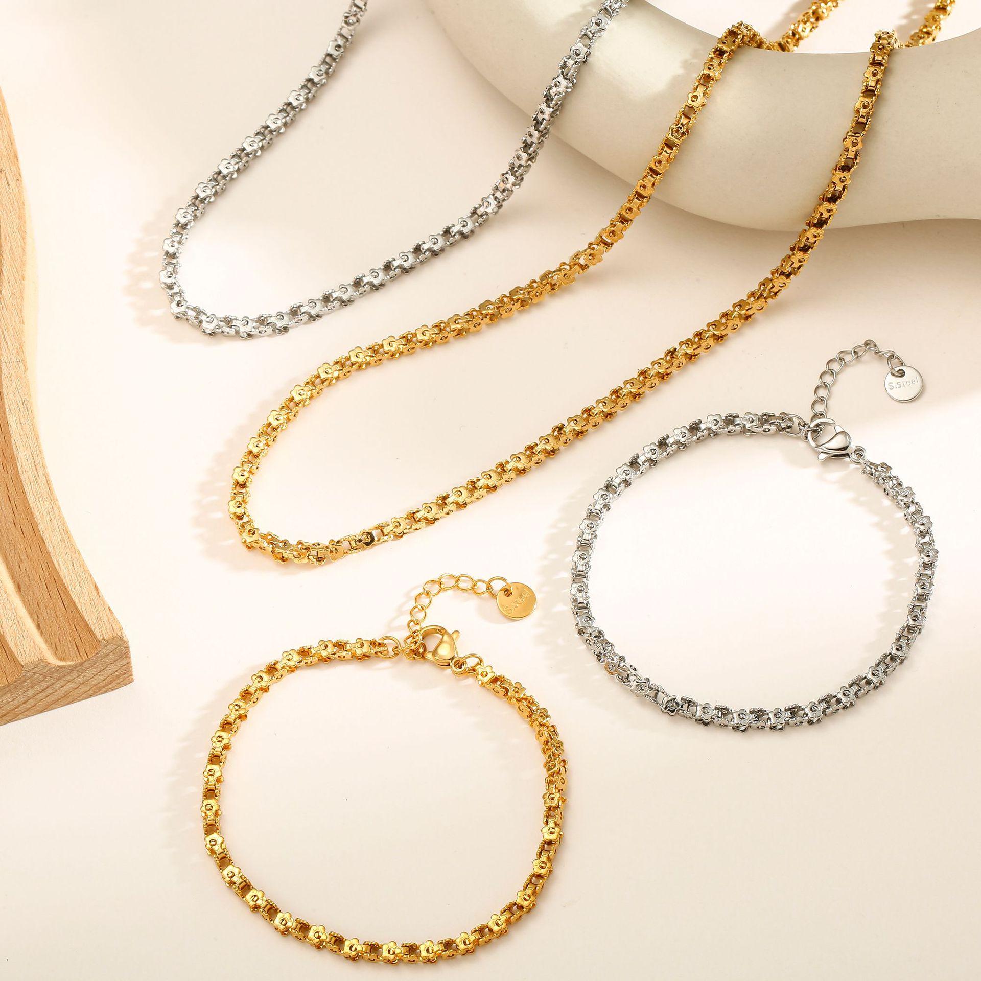 Collar y pulsera de acero de titanio con diseño de flor, de acero inoxidable, con nicho multicolor, estilo europeo y americano, resistente al color y con cadena de clavícula.
