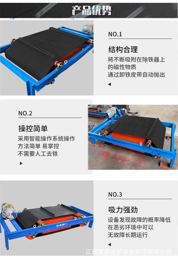 O removedor de ferro magnético forte autodescarregável é um equipamento de remoção de ferro altamente eficiente e automatizado, usado principalmente para remover impurezas ferromagnéticas de materiais. Seus componentes principais utilizam ímãs permanentes de alta resistência ou eletroímãs, que podem gerar um forte campo magnético para adsorver rapidamente impurezas metálicas como limalhas de ferro e pregos de ferro. O equipamento geralmente é equipado com uma função de autodescarga, que pode remover automática ou manualmente as impurezas adsorvidas quando atingem uma certa quantidade, sem a necessidade de interrupção da operação, melhorando significativamente a eficiência da produção.