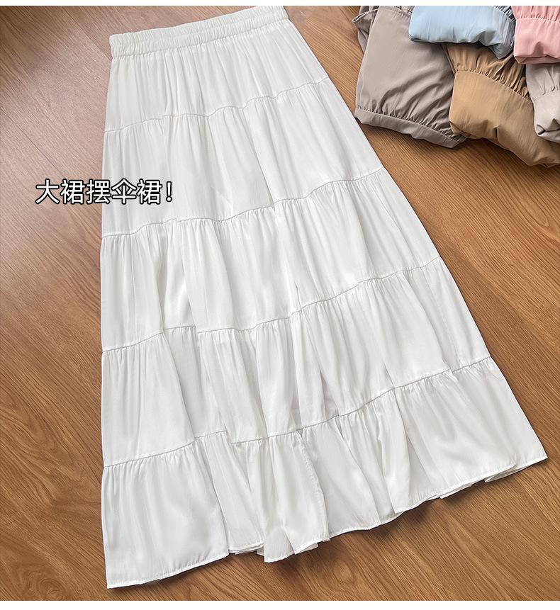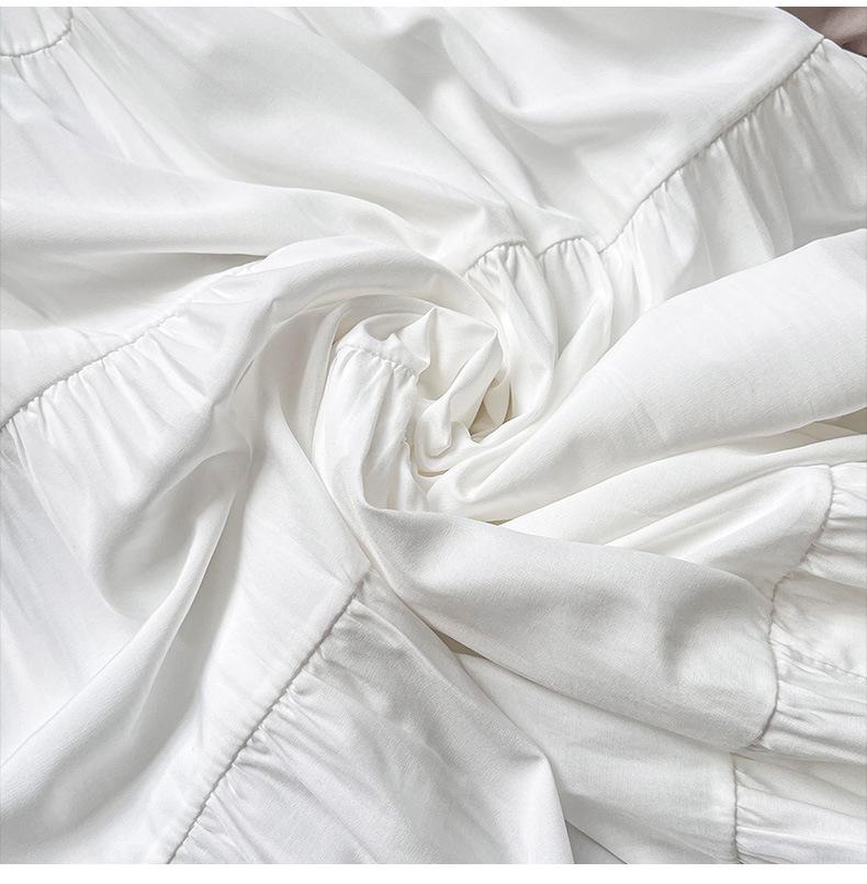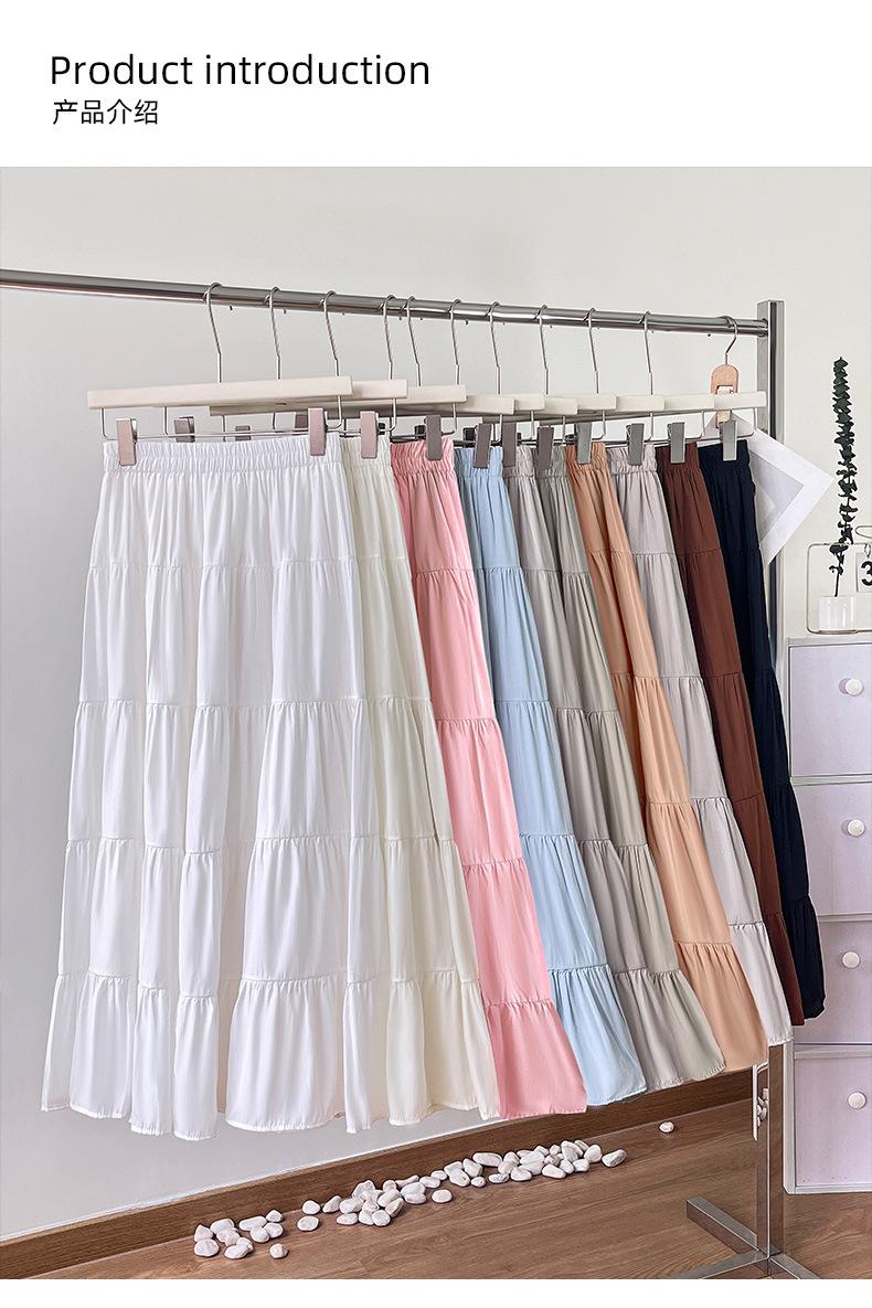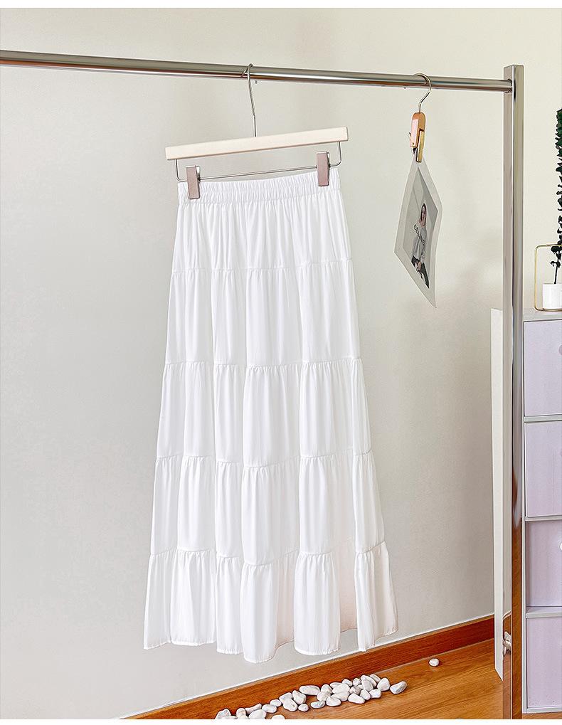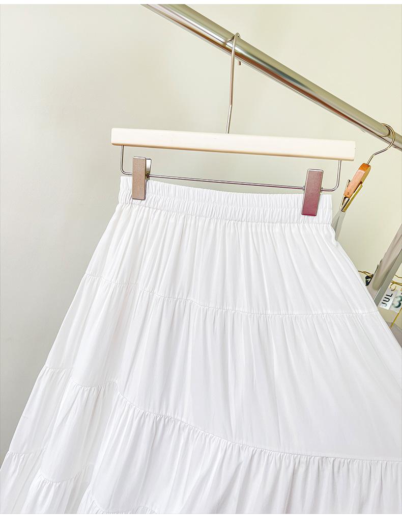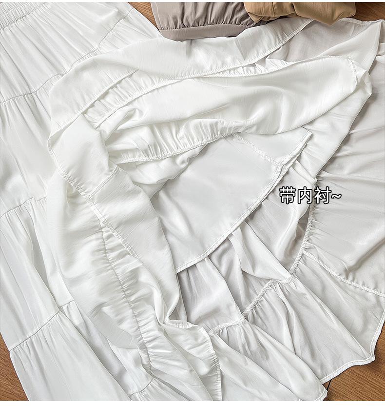 2025 Nueva Falda Larga Blanca Patchwork Estilo Francés, Falda Drapeada de Bajo Amplio para Mujer, Suave Estilo Francés para Primavera y Verano