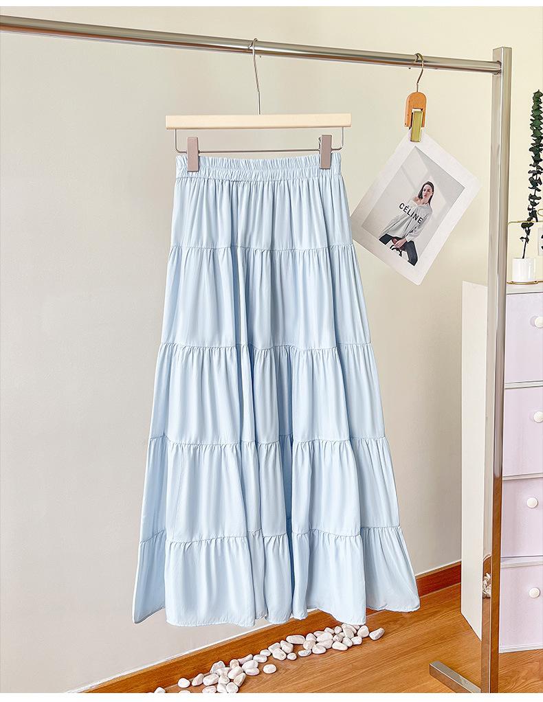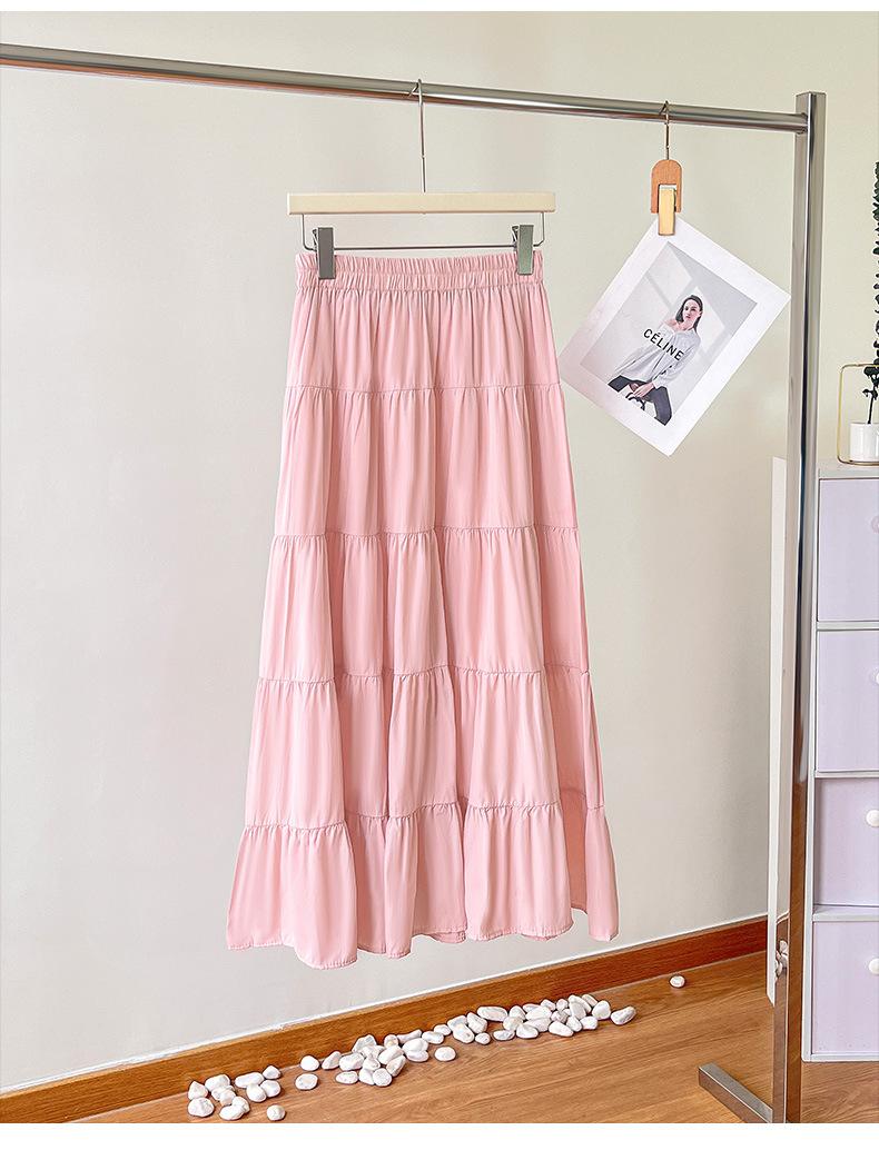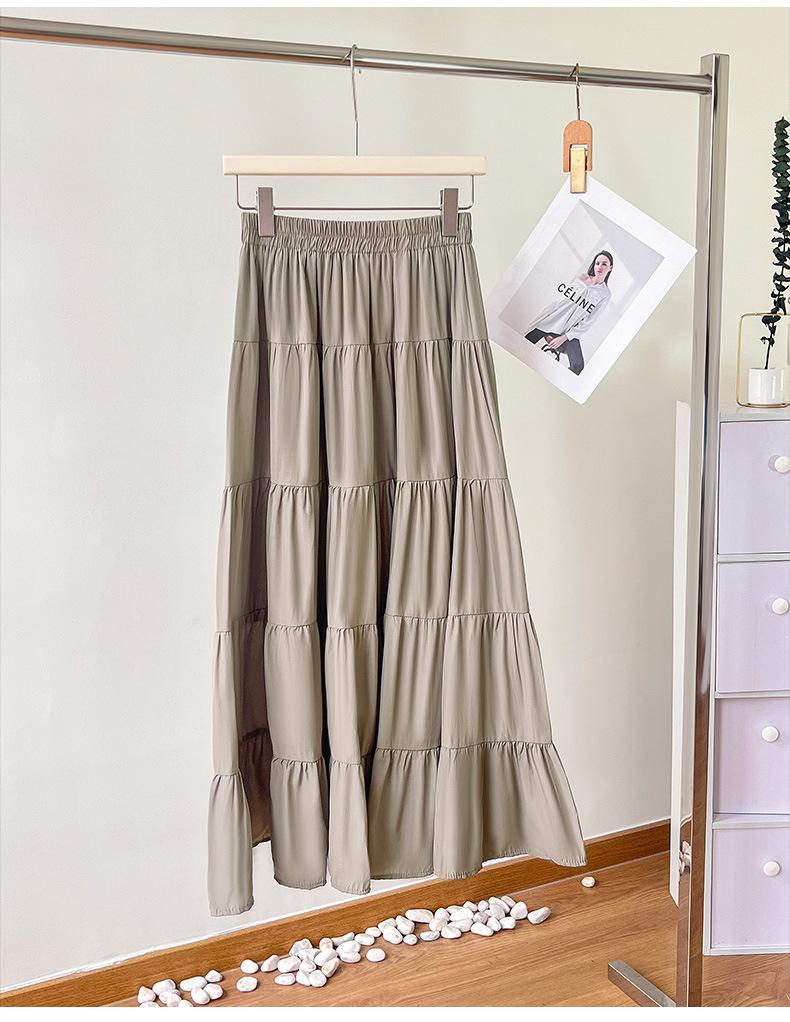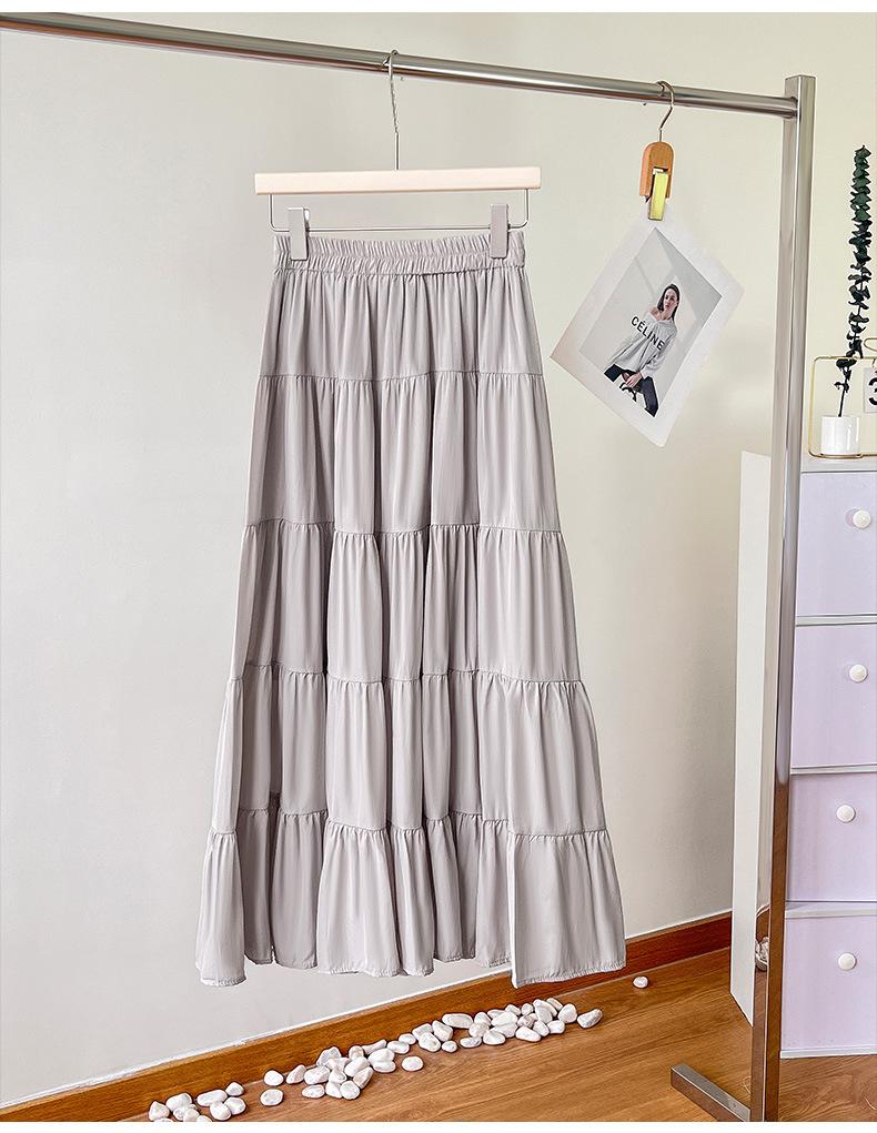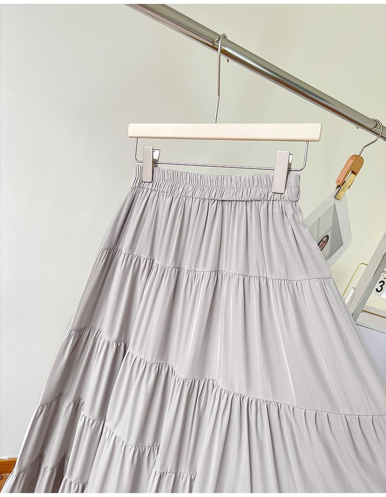 2025 Nueva Falda Larga Blanca Patchwork Estilo Francés, Falda Drapeada de Bajo Amplio para Mujer, Suave Estilo Francés para Primavera y Verano