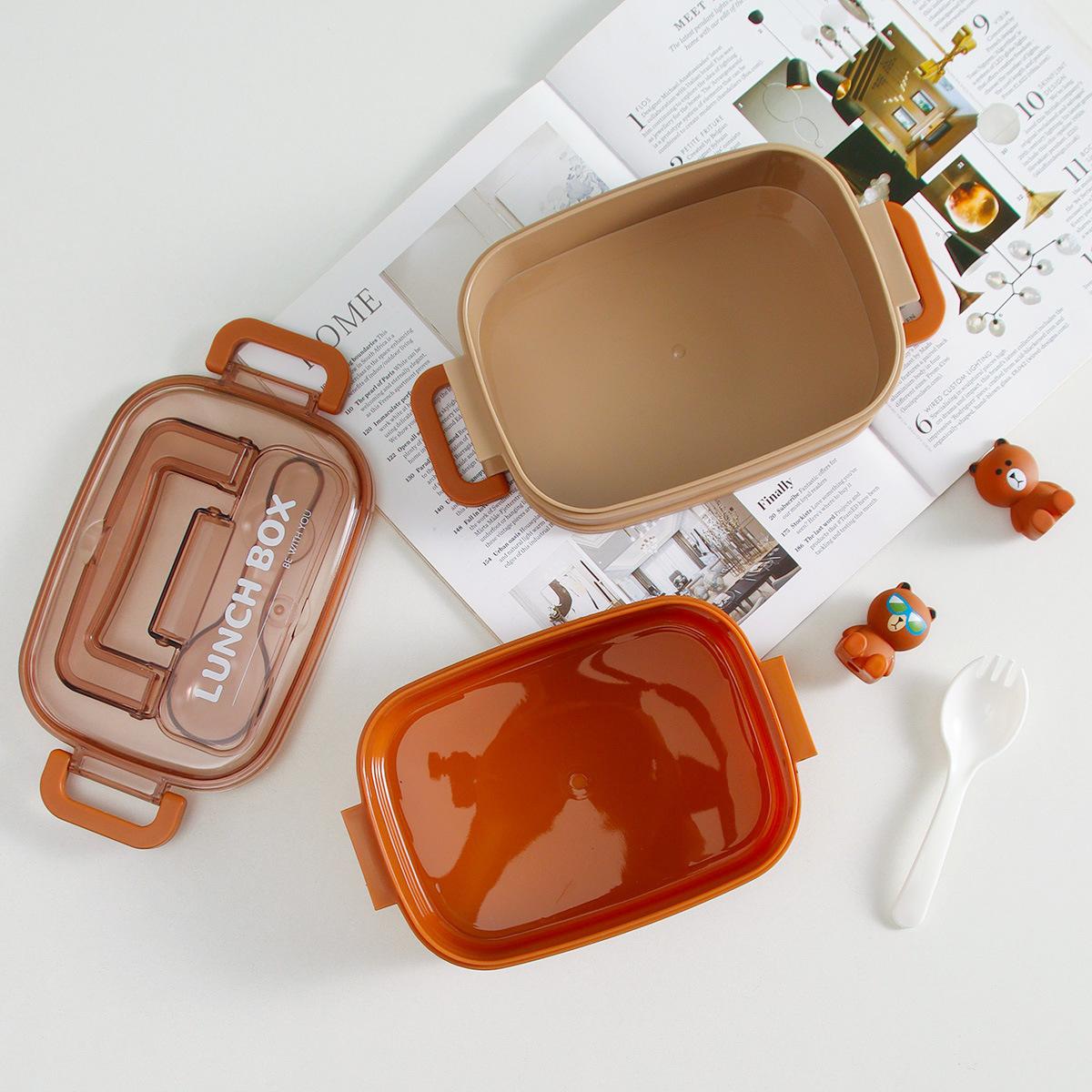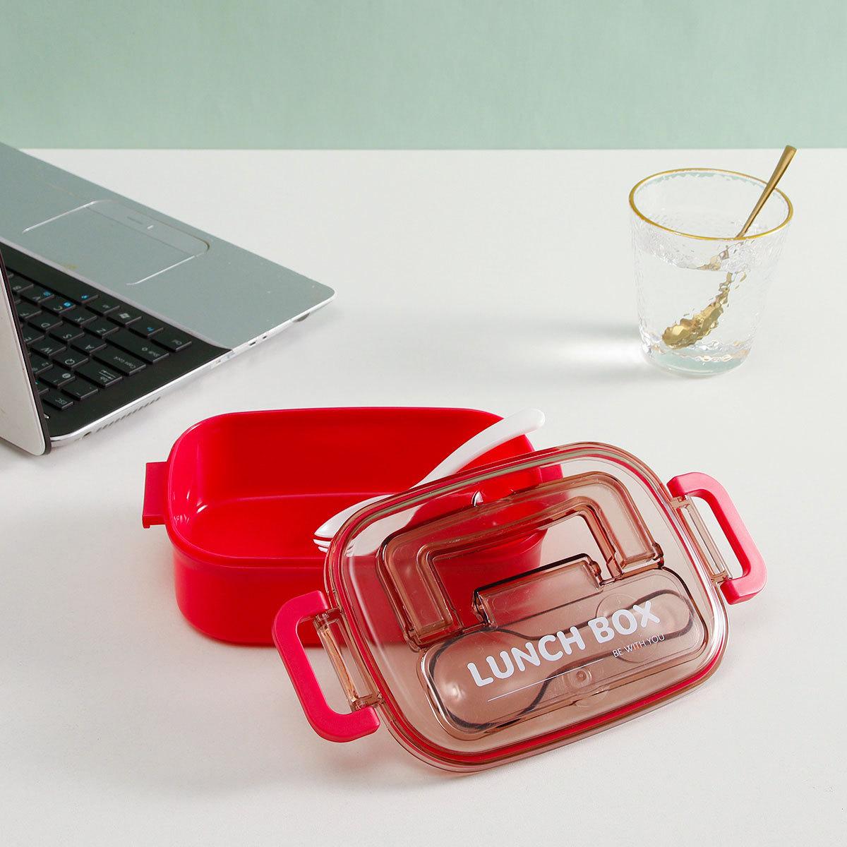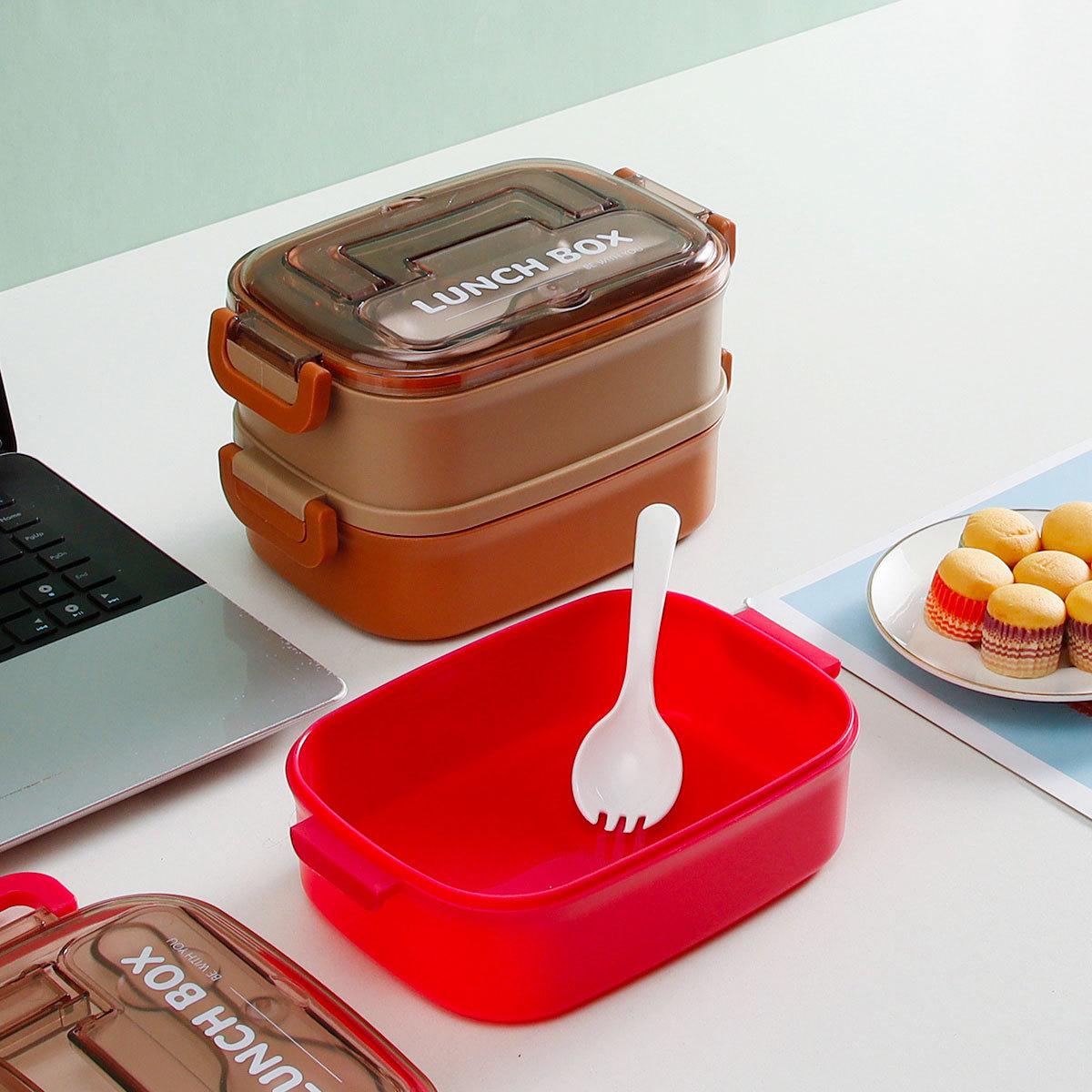 Lonchera portátil de plástico de una sola capa, lonchera para calentar en microondas, caja sellada para mantener fresco, doble capa con cuchara 950ML/1.9L