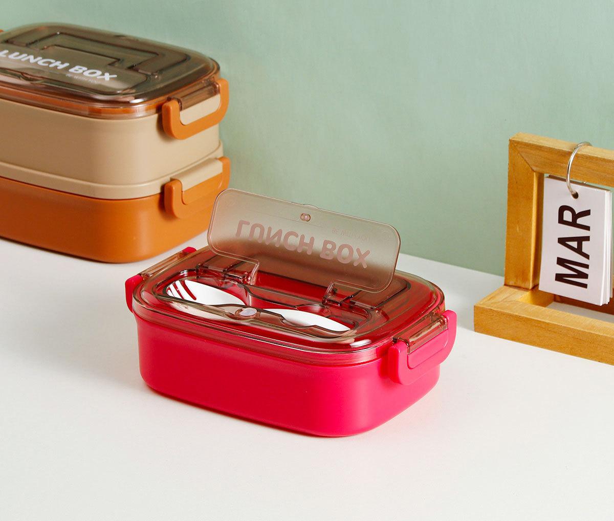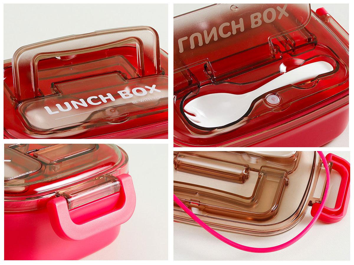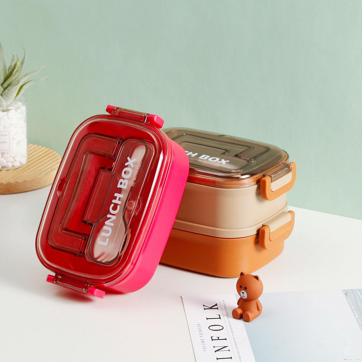 Lonchera portátil de plástico de una sola capa, lonchera para calentar en microondas, caja sellada para mantener fresco, doble capa con cuchara 950ML/1.9L