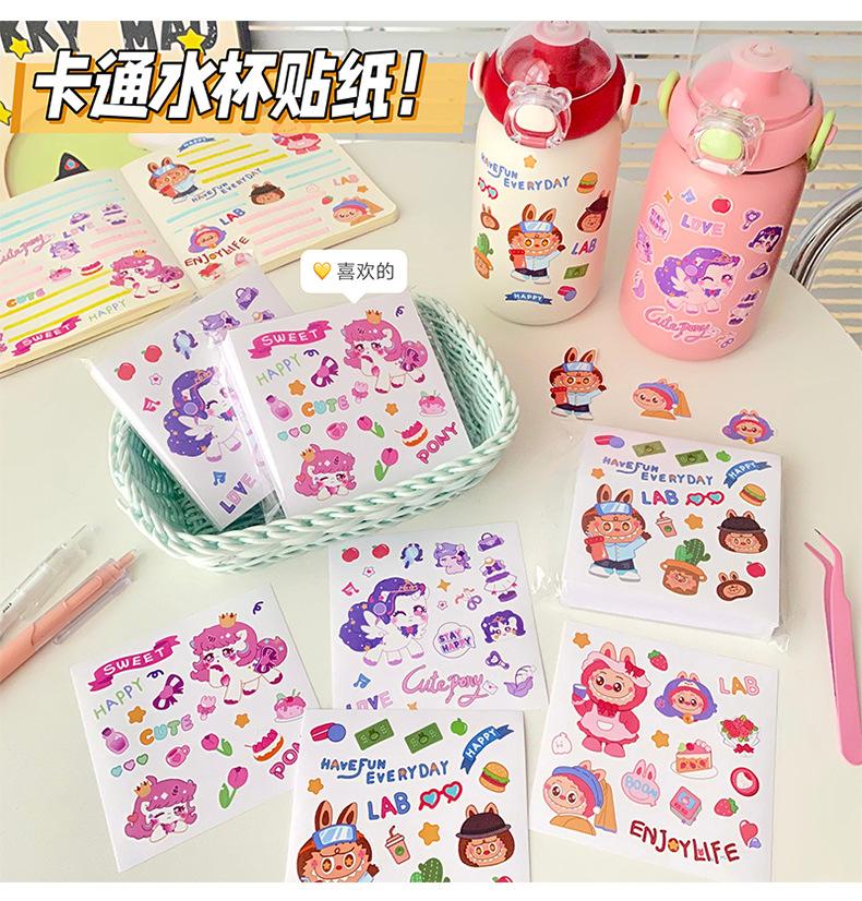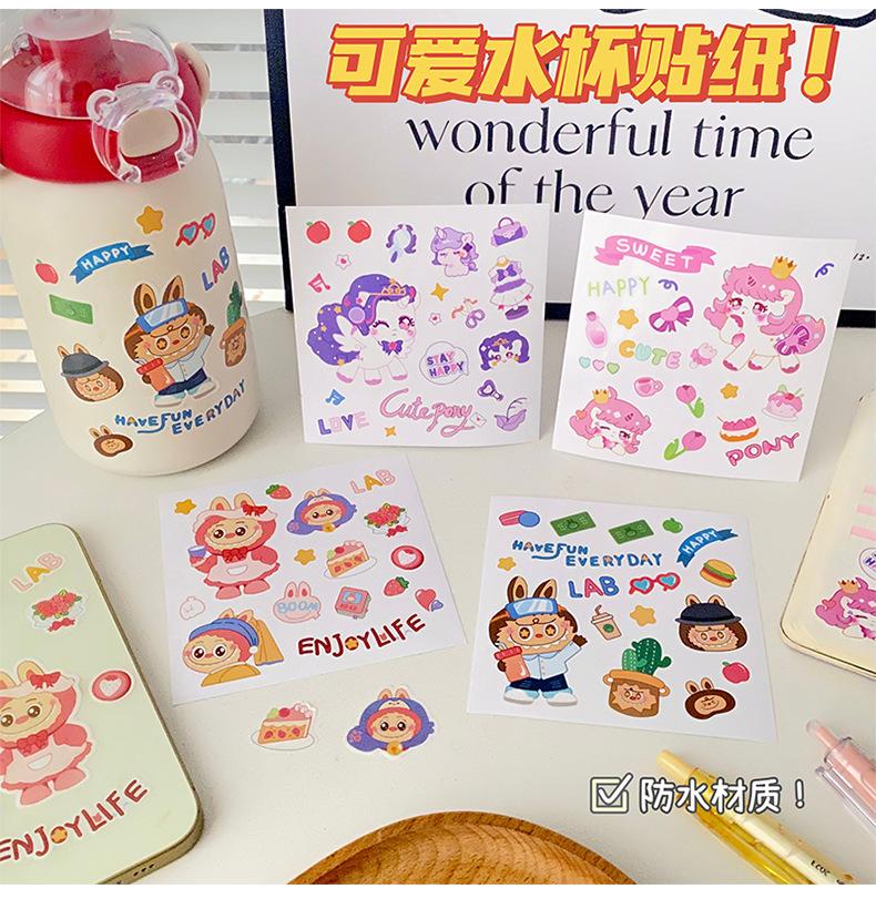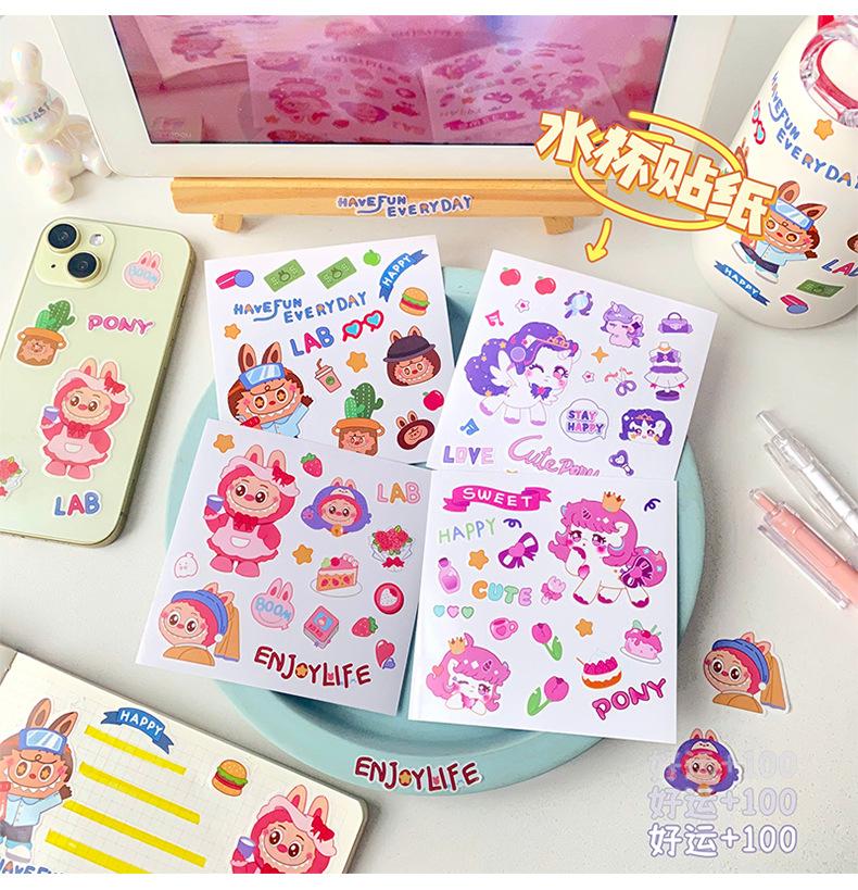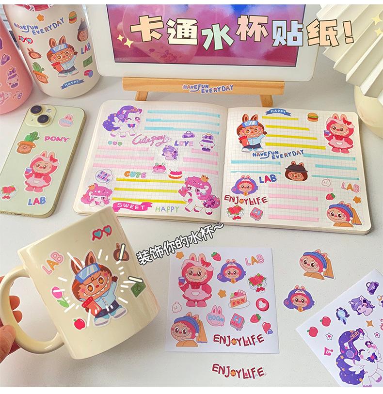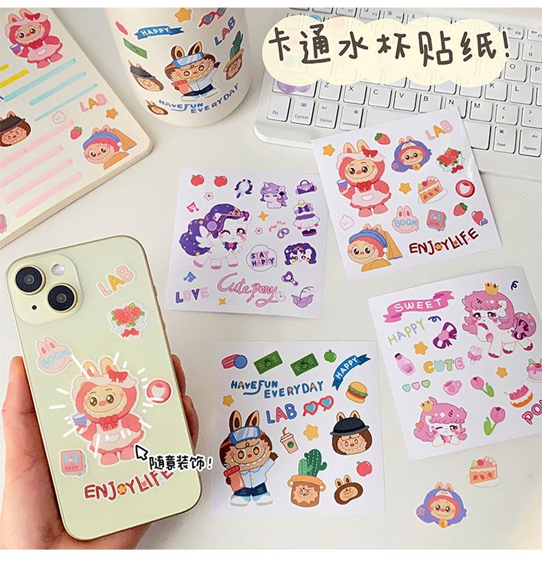 Adesivos de Expressão Mutável LABUBU Mais Vendidos Adesivos DIY para Vestir Crianças Adesivos de Desenho Animado Fofos Adesivos para Scrapbook Adesivos para Decoração de Garrafa de Água