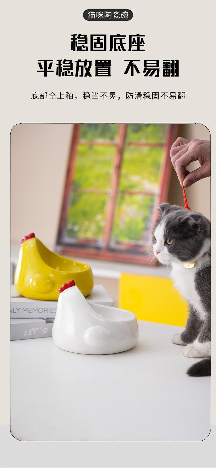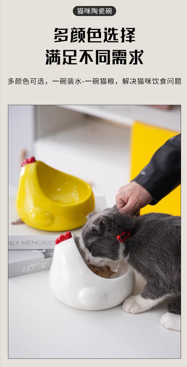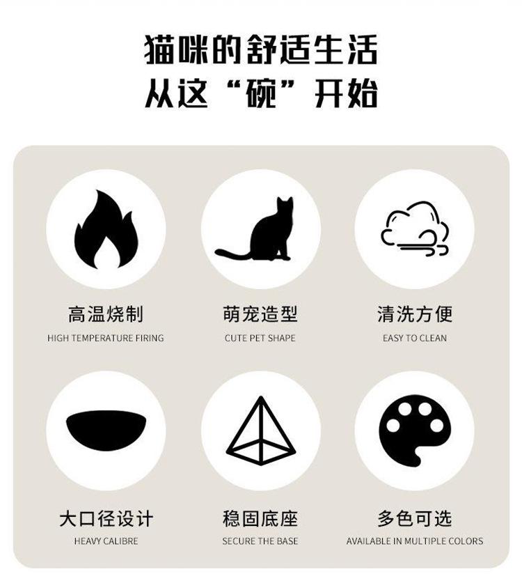 [Nome do Produto]Tigela de cerâmica para gatos, tigela dupla de água para proteger as vértebras cervicais, tigela de comida para gatos oblíqua de pé alto, tigela de água potável, suprimentos para animais de estimaçãoGrande quantidade, bom preço, o LOGOTIPO pode ser impresso