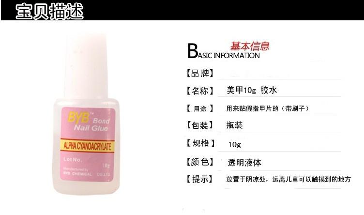 Cada botella contiene 10 gramos y viene con un pincel. Es muy conveniente para pegar puntas de uñas de pegamento completo o puntas de uñas francesas de medio pegamento.