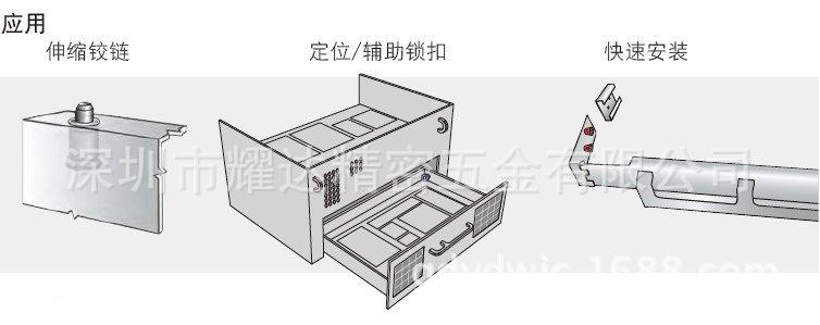 Âmbito de aplicação: Dobradiça telescópica, posicionamento, trava auxiliar, instalação rápida Amostra ou ponto: A amostra é uma peça padrão: Peças não padronizadas