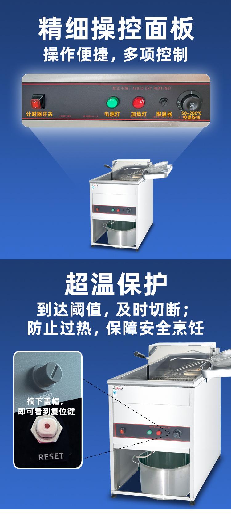 2.O termostato está localizado na parte frontal do produto para controlar a temperatura de aquecimento do tubo de aquecimento elétrico para garantir a temperatura de operação do óleo na fritadeira.