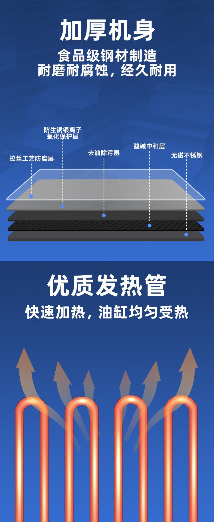 Antes de usar, adicione 2/3 do óleo na panela;O tubo de aquecimento é estritamente proibido de aquecimento a seco!