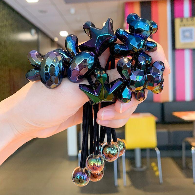 GG&MM versão coreana de acessórios para cabelo infantil, corda de cabelo preta enrolada, feminina, cor brilhante, coroa, anel de cabelo elástico alto, cocar legal e doce