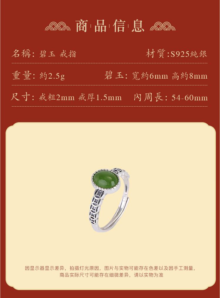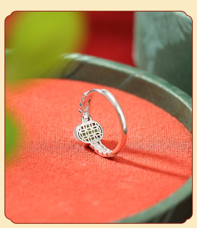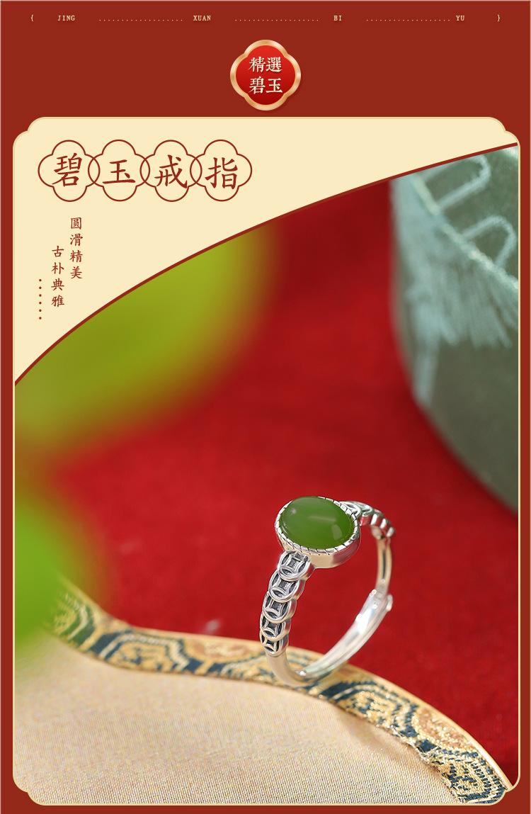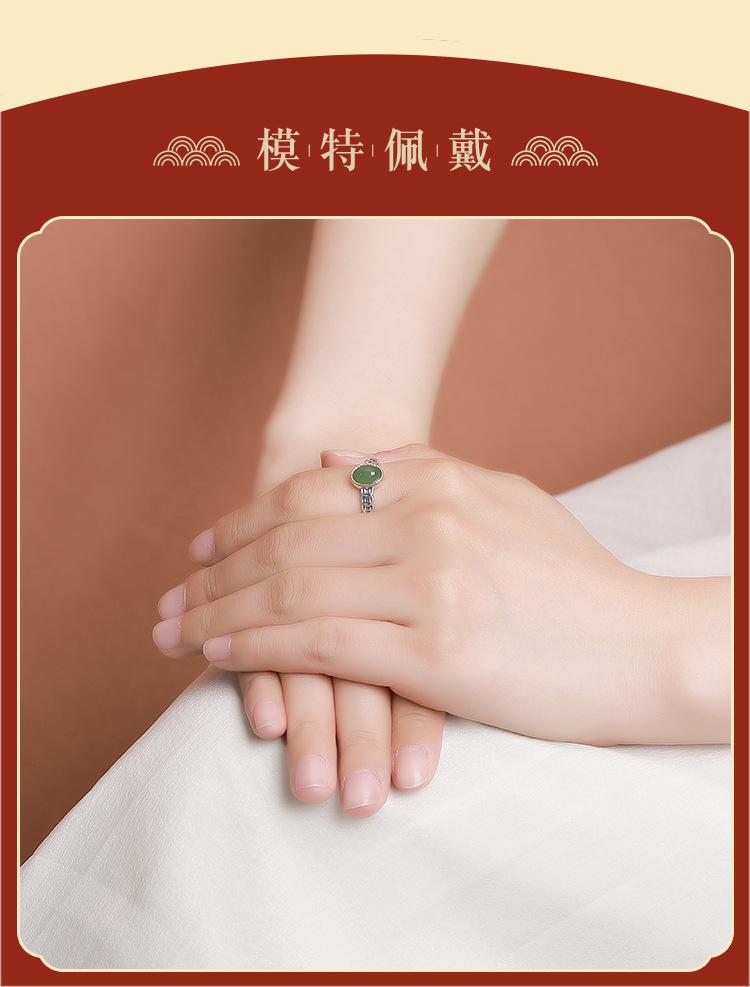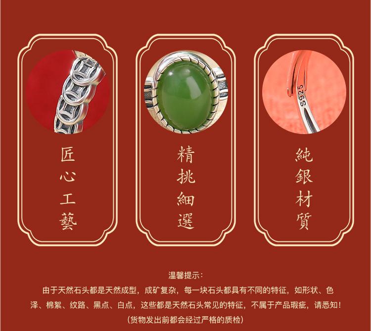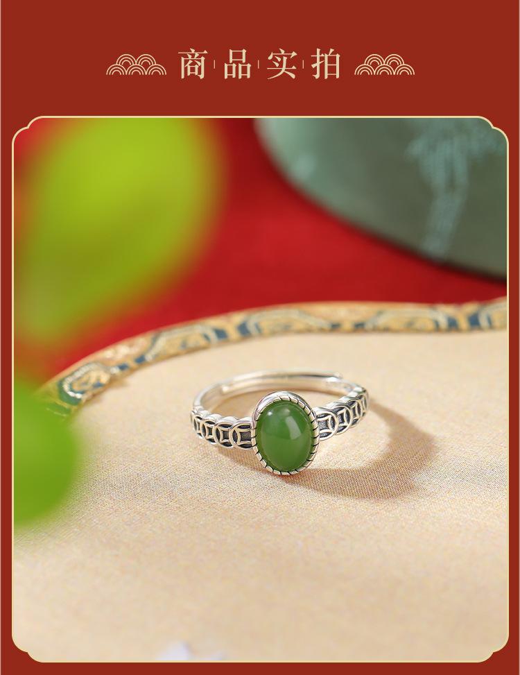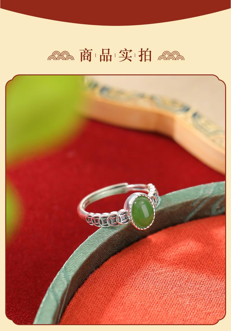 Anillo Yuebao de plata de ley S925 con jaspe hetiano, moneda vintage con cara de huevo, estilo chino, abierto.
