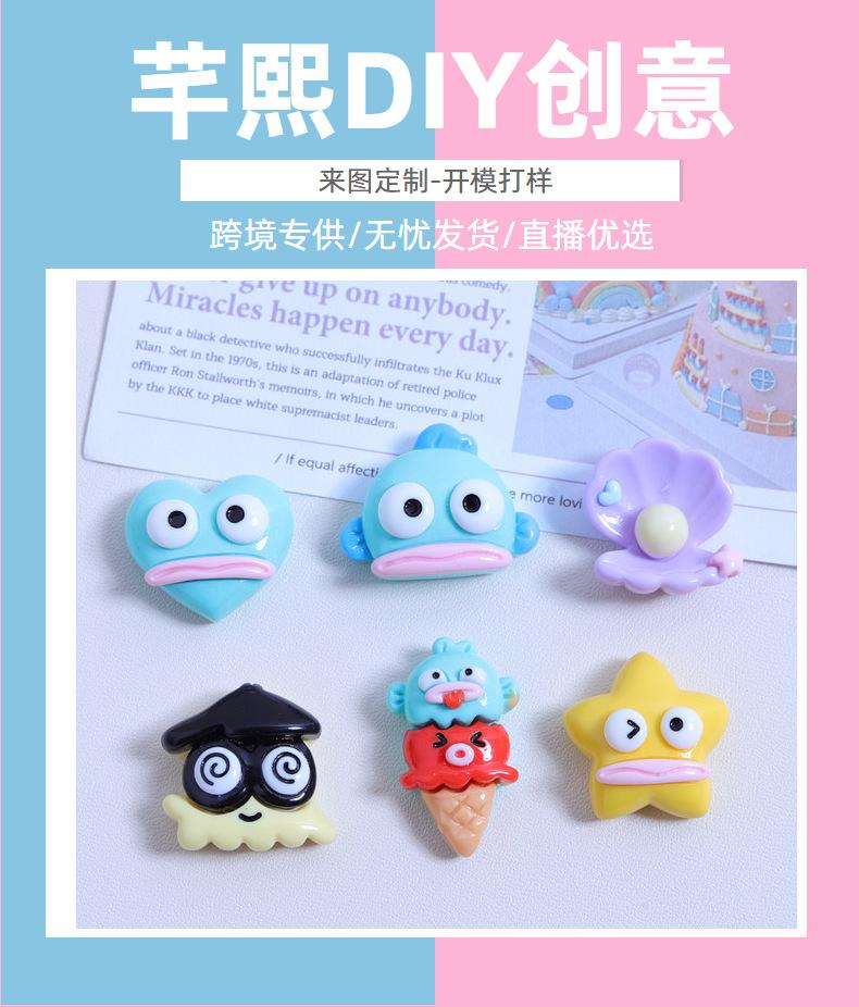 Desenho Animado Peixe Boca Grande Brilhante DIY Cola Creme Caseiro Material Adesivo para Copo de Água Material Acessórios de Resina para Capa de Celular