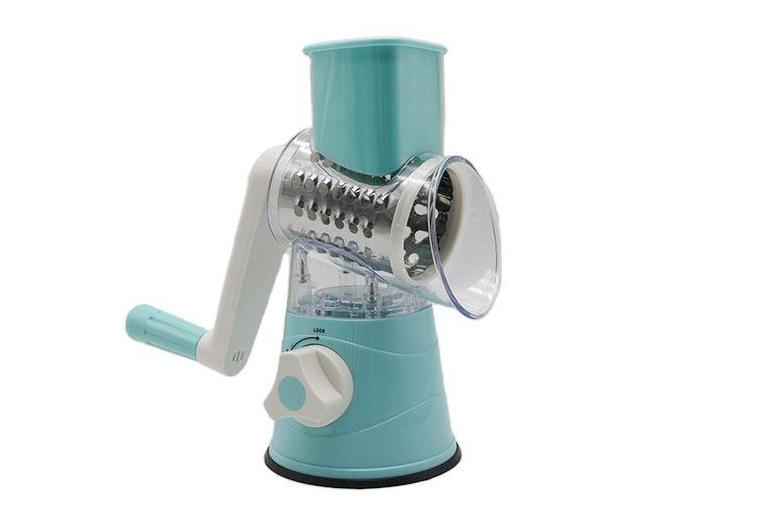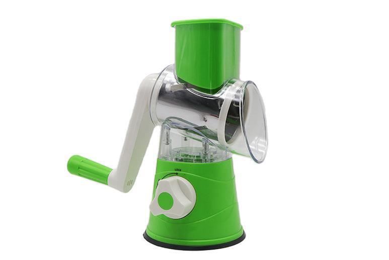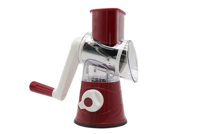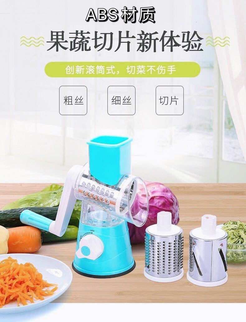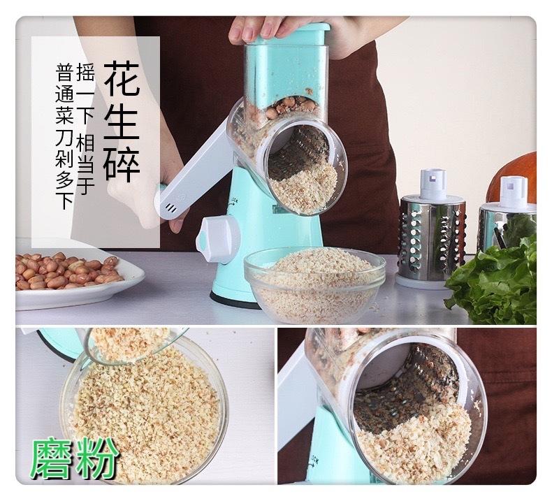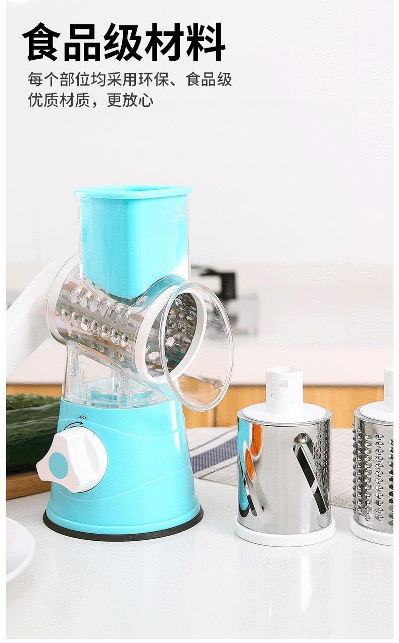 Composição do produto: base de ventosa, empurrador de alimentos, manivela, porta de alimentação de alimentos, cilindro de faca de corte, cilindro de faca de trituração, cilindro de faca de corte de tiras, manual de instruções em inglês + embalagem em caixa colorida em inglês.
