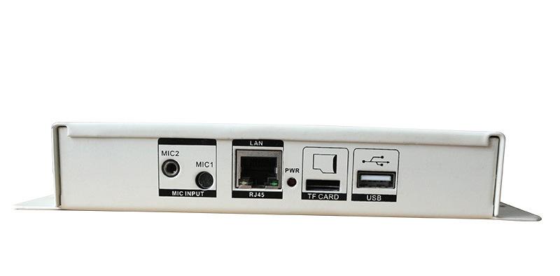 Salida de transmisión:Admite salida de amplificador de 15W de 2 vías, se puede conectar a altavoces de impedancia fija de 8 ohmios