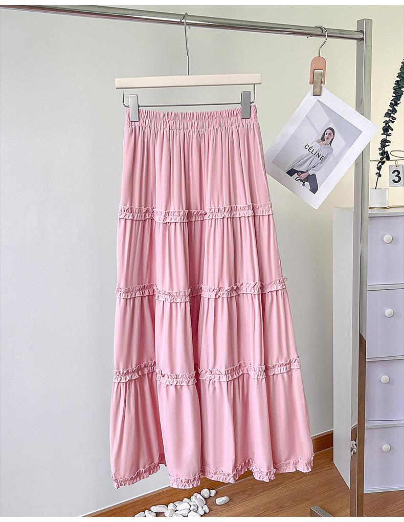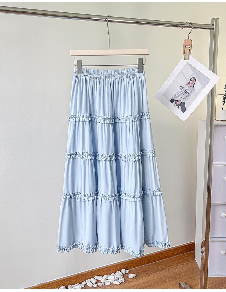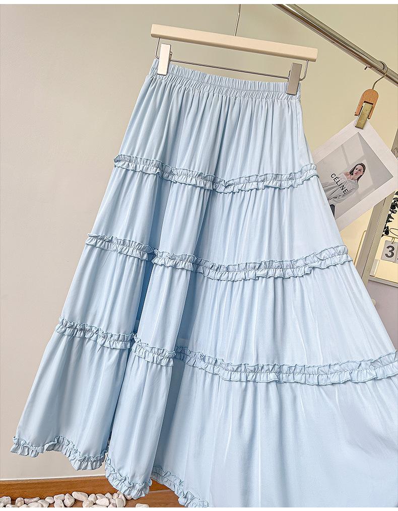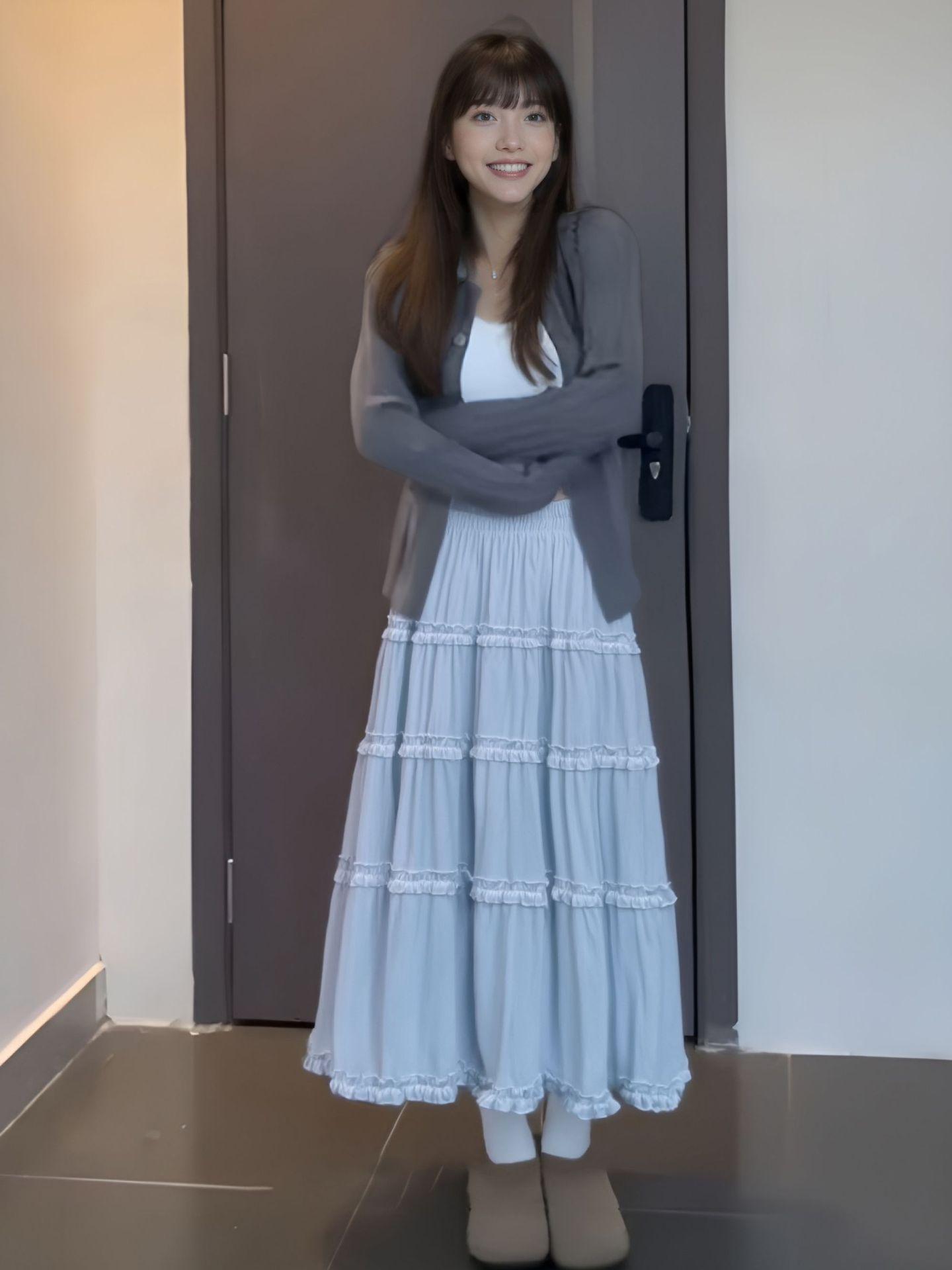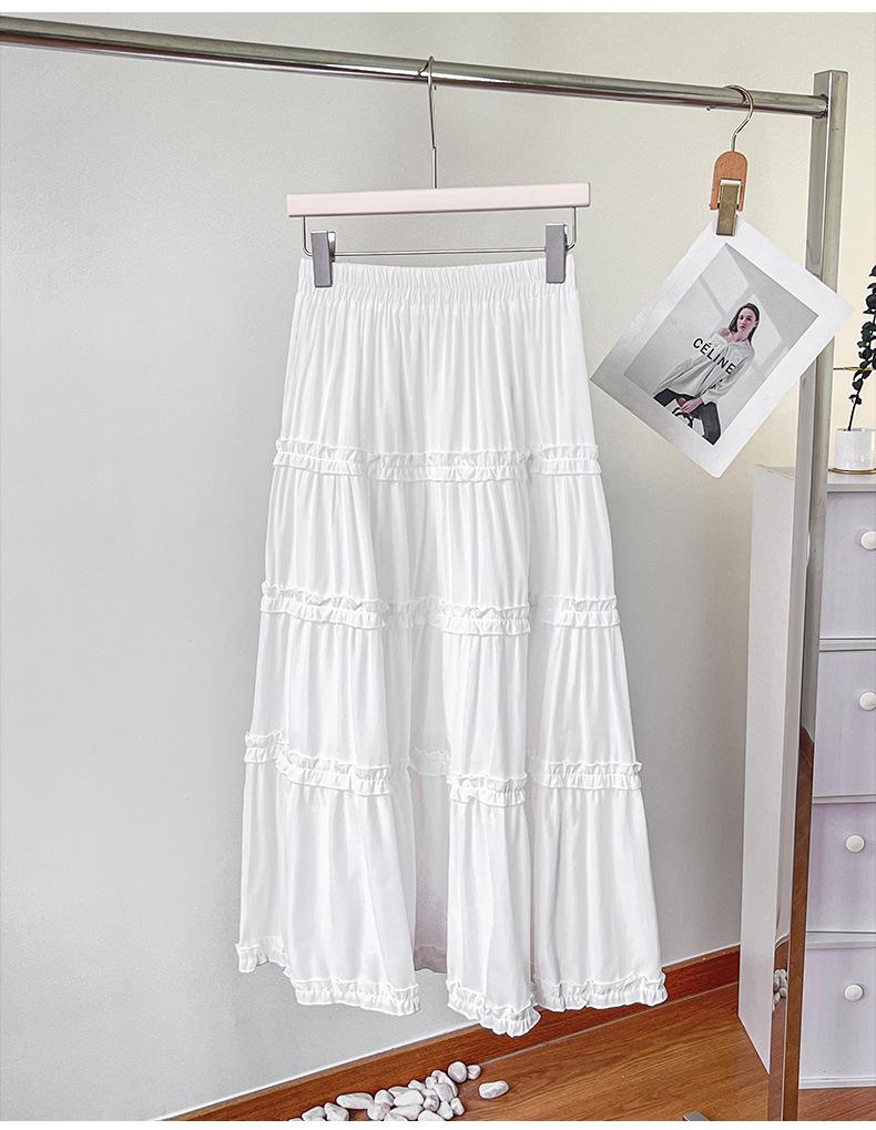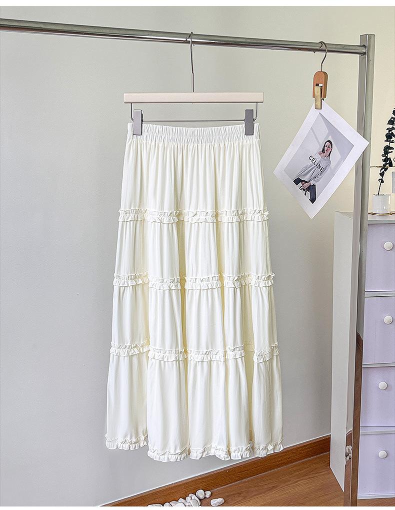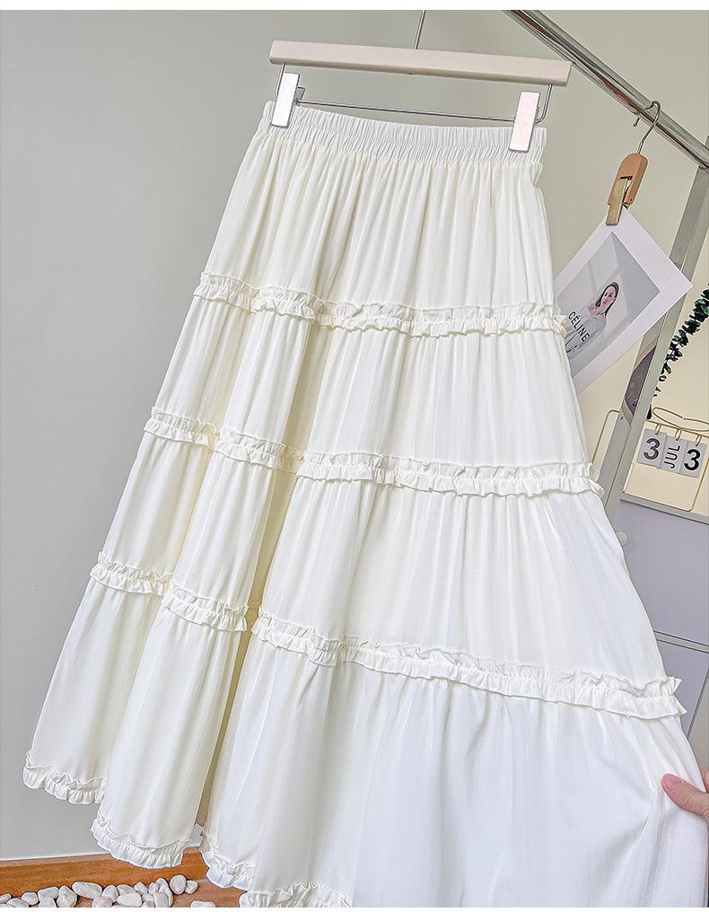 2025 Nuevo Estilo Dulce Encaje Blanco Falda de Pastel A-Line para Mujer Principios de Otoño Reductor de Edad Look Adelgazante Falda de Cintura Alta
