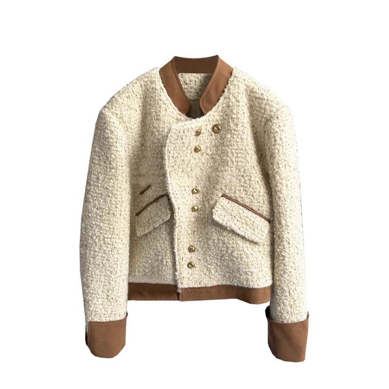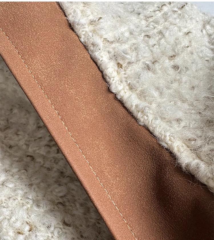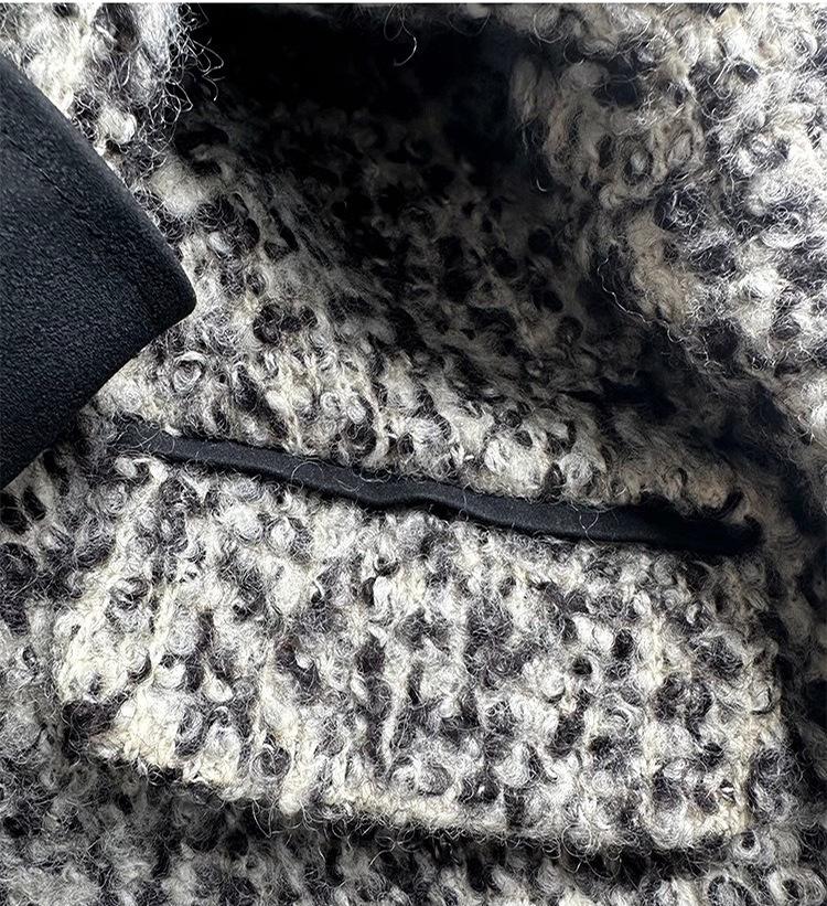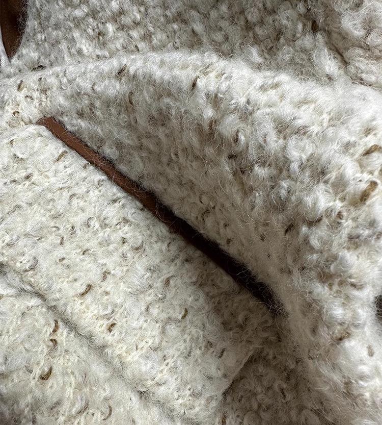 La textura de la lana buclé es suficiente y la tela no es de color puro.