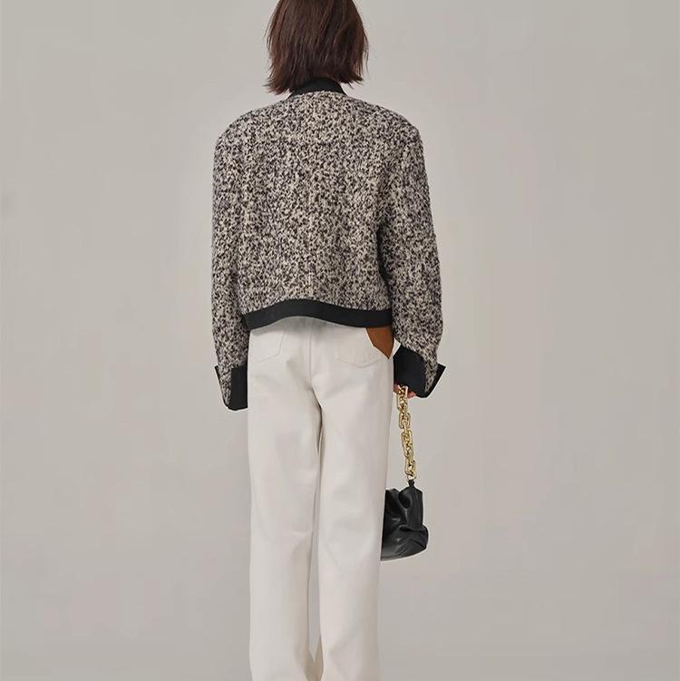 Diseño de manga empalmada color mixto lana perezosa silueta alta JI abrigo corto de lana para mujer