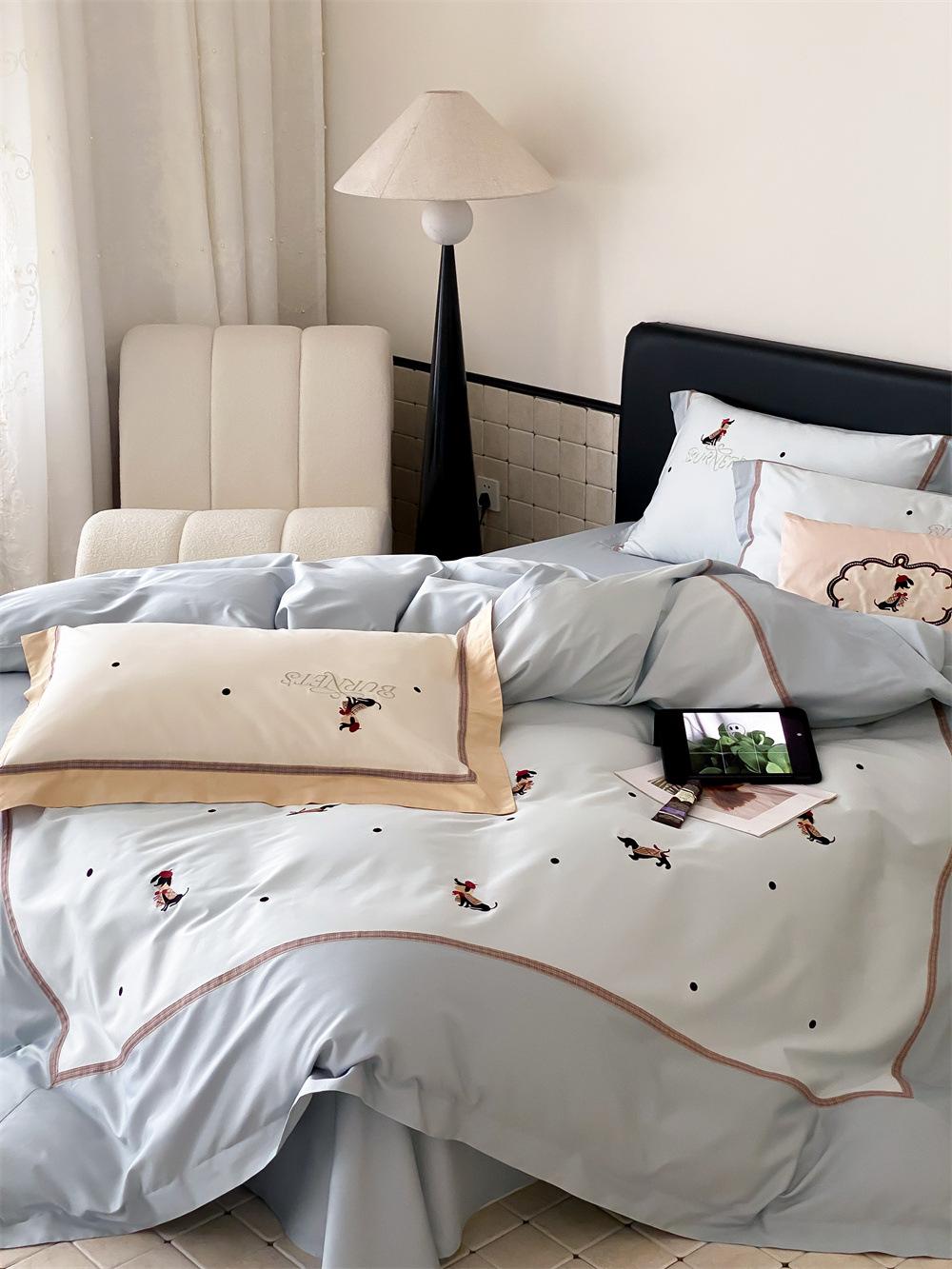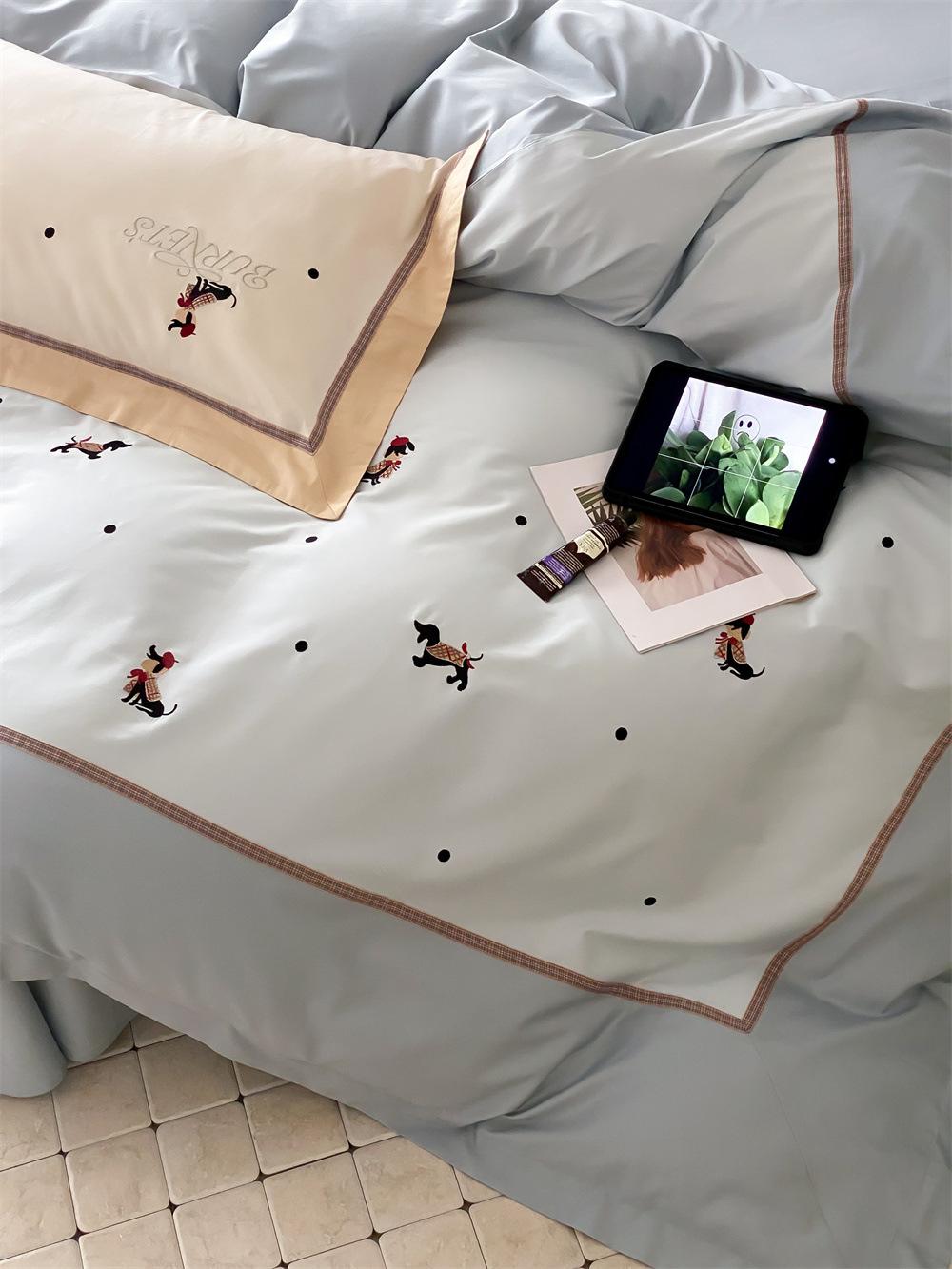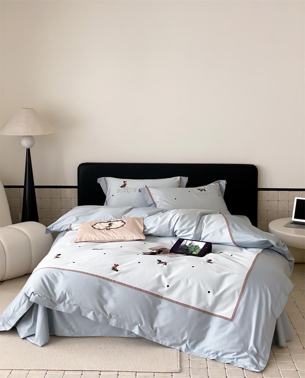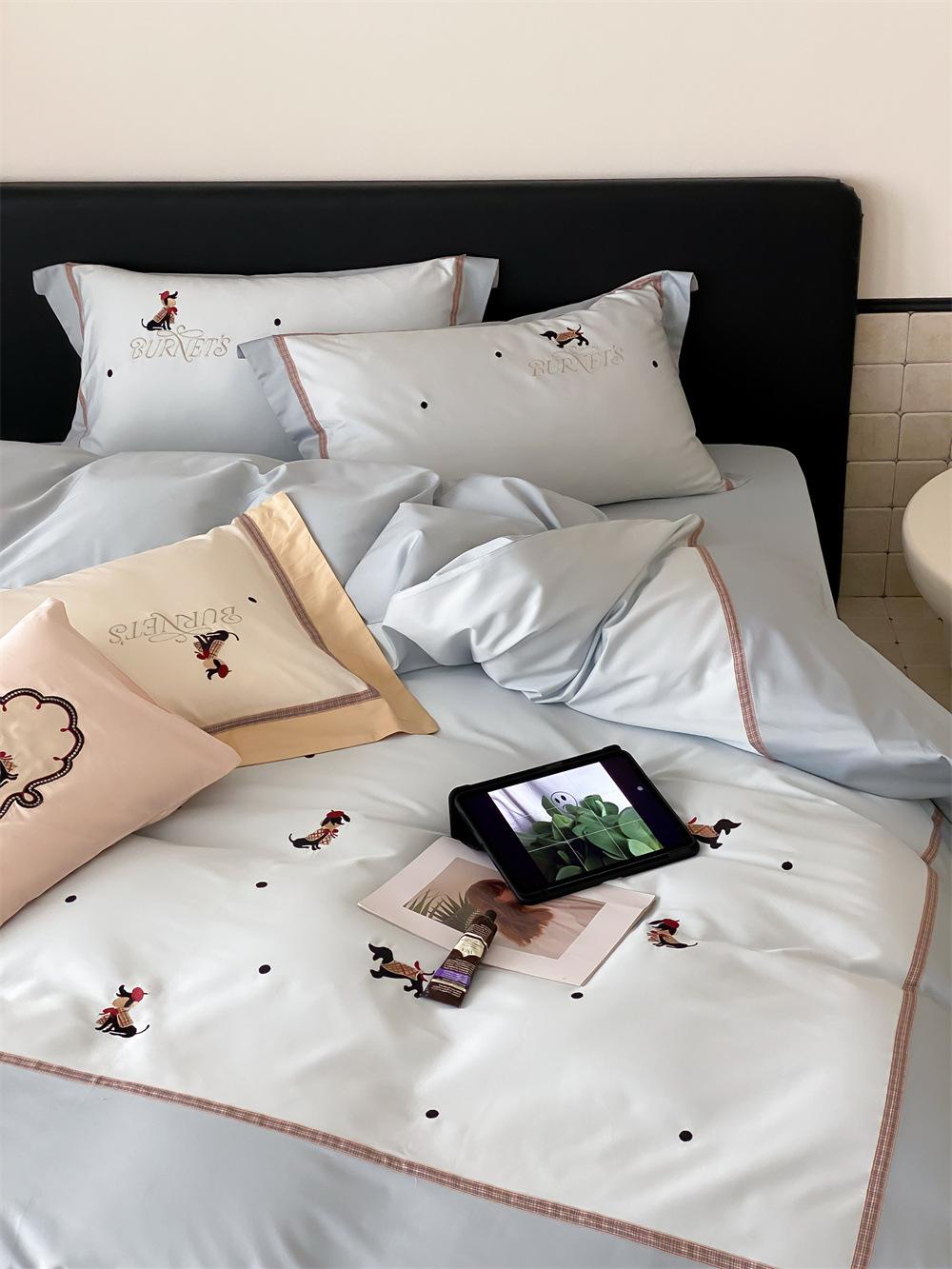 O algodão de fibra longa é frequentemente usado para tecer fios de alta contagem. O produto acabado é respirável, macio, delicado, macio e tem um certo brilho. Portanto, o tecido fica mais macio, delicado e liso. Portanto, não será muito espesso e poderá transmitir luz. Recomenda-se usar um núcleo de colcha branco ou de cor sólida da mesma cor.