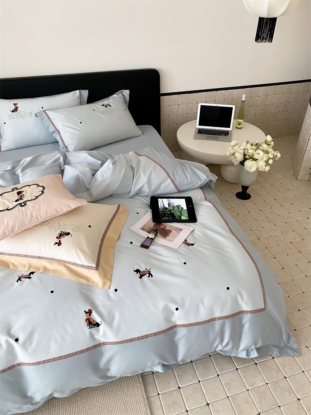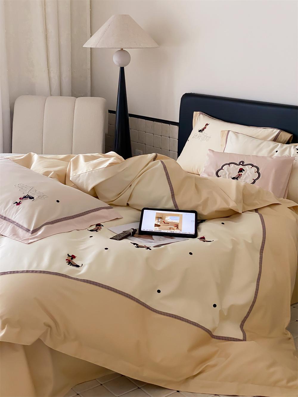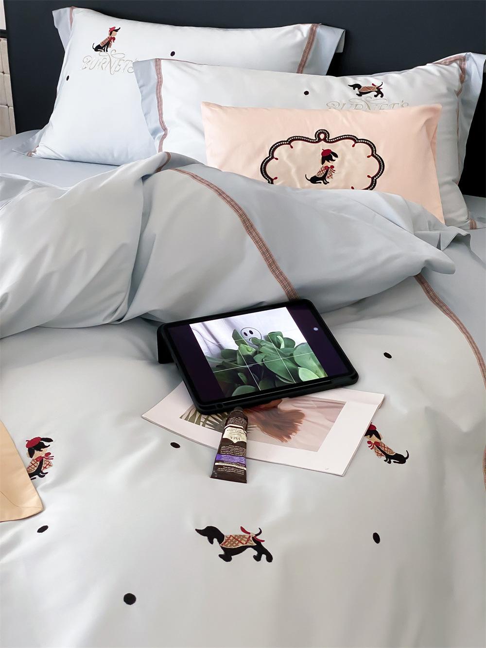 O algodão de fibra longa é frequentemente usado para tecer fios de alta contagem. O produto acabado é respirável, macio, delicado, macio e tem um certo brilho. Portanto, o tecido fica mais macio, delicado e liso. Portanto, não será muito espesso e poderá transmitir luz. Recomenda-se usar um núcleo de colcha branco ou de cor sólida da mesma cor.