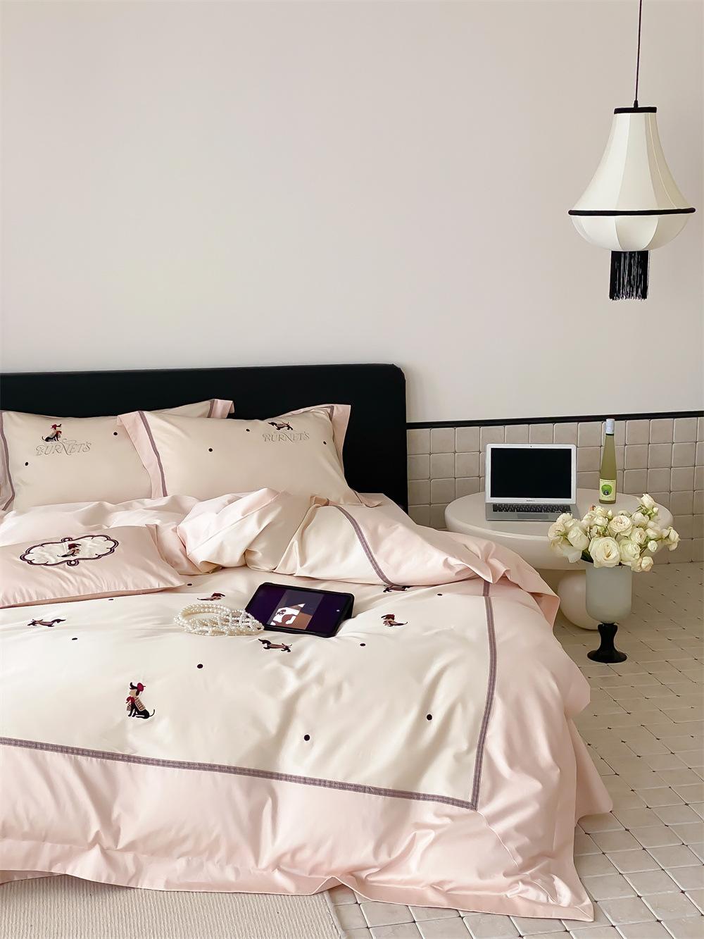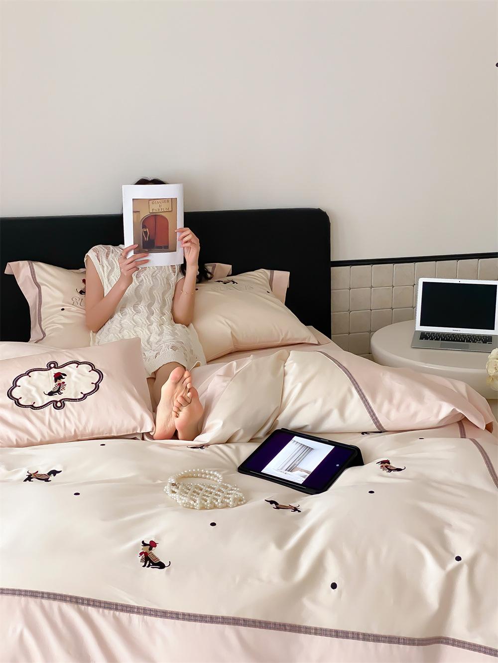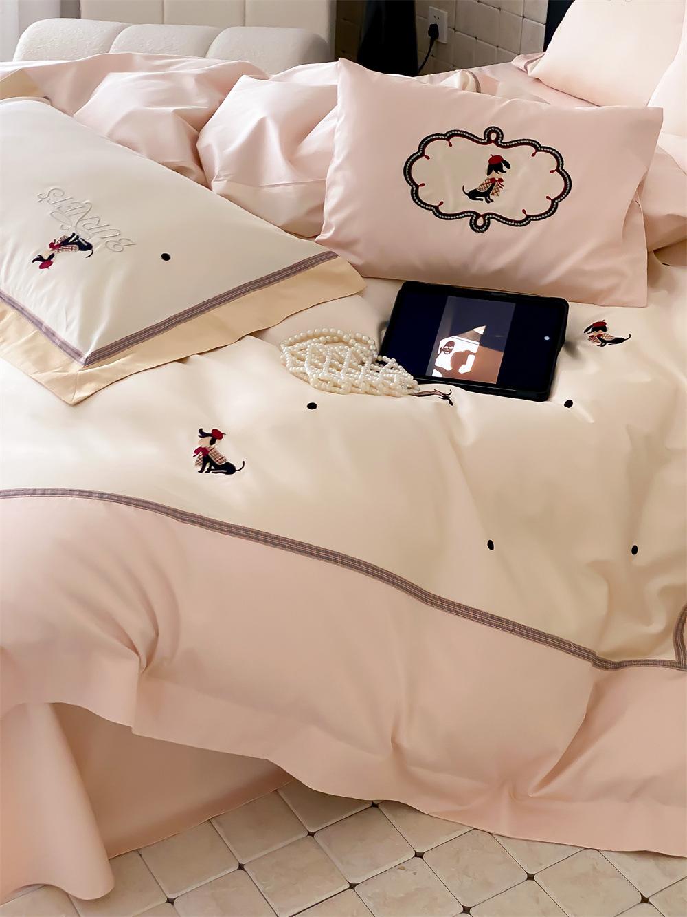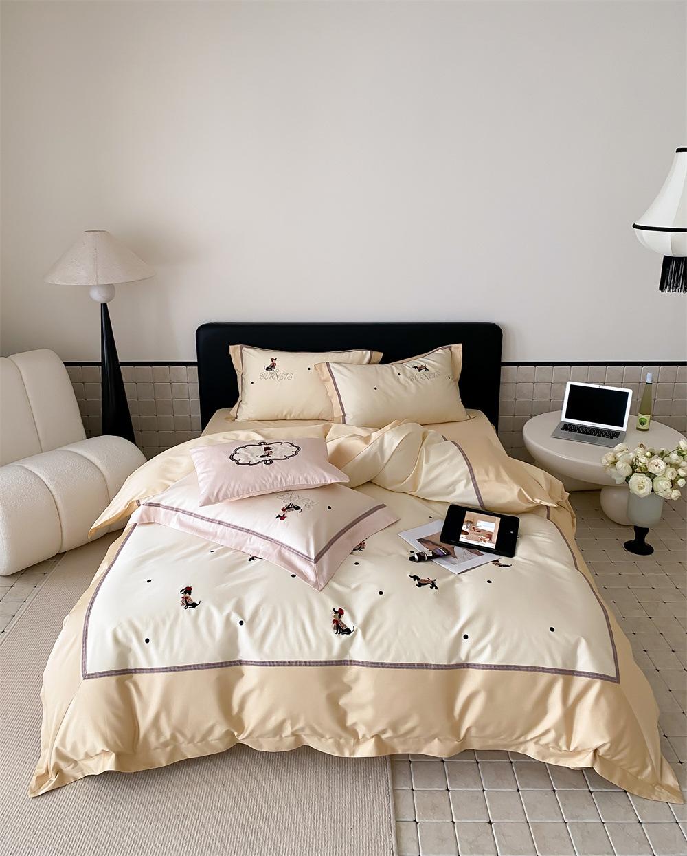 O algodão de fibra longa é frequentemente usado para tecer fios de alta contagem. O produto acabado é respirável, macio, delicado, macio e tem um certo brilho. Portanto, o tecido fica mais macio, delicado e liso. Portanto, não será muito espesso e poderá transmitir luz. Recomenda-se usar um núcleo de colcha branco ou de cor sólida da mesma cor.