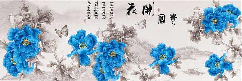 A imagem do efeito 5D da peônia azul em plena floração é a seguinte: